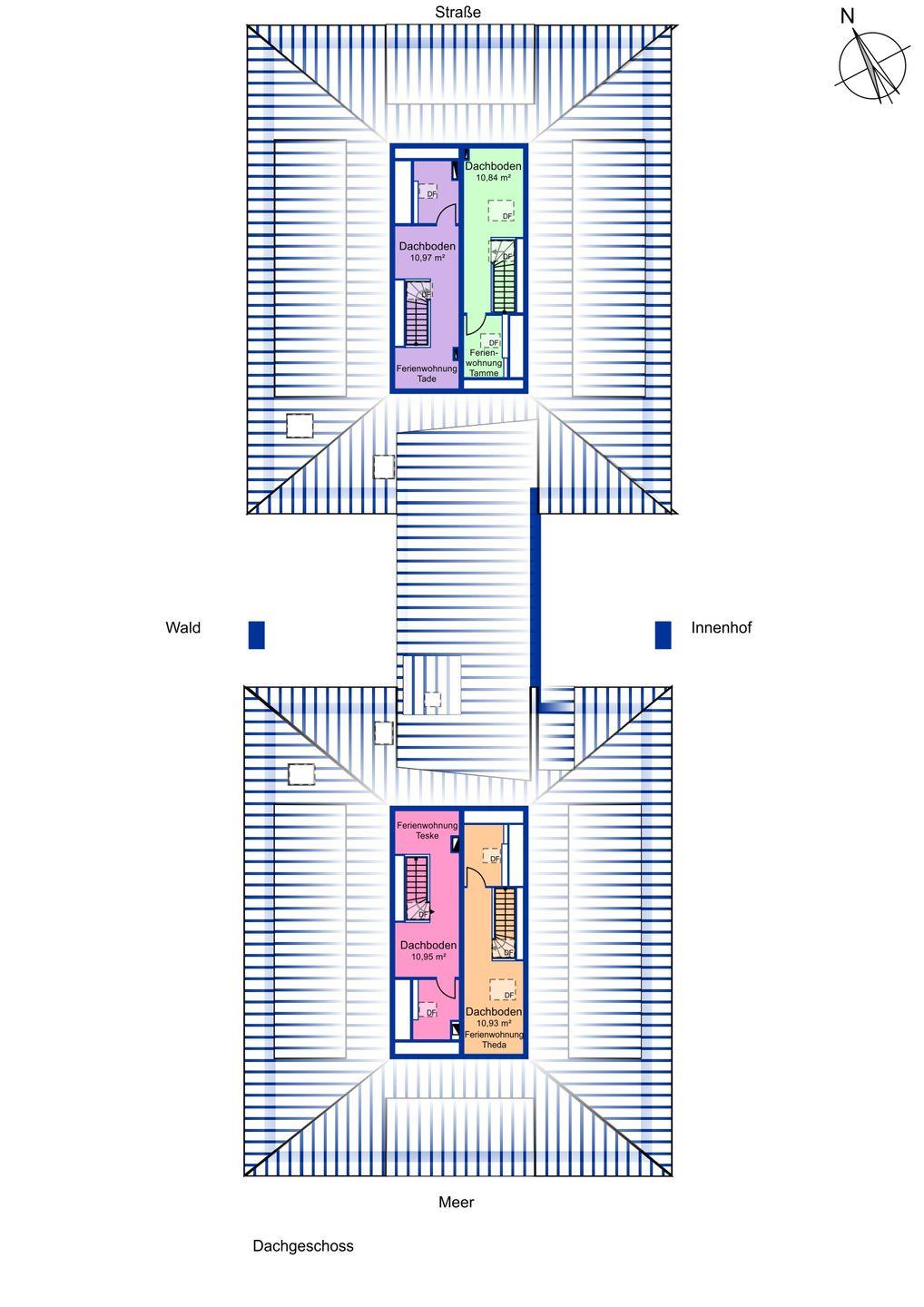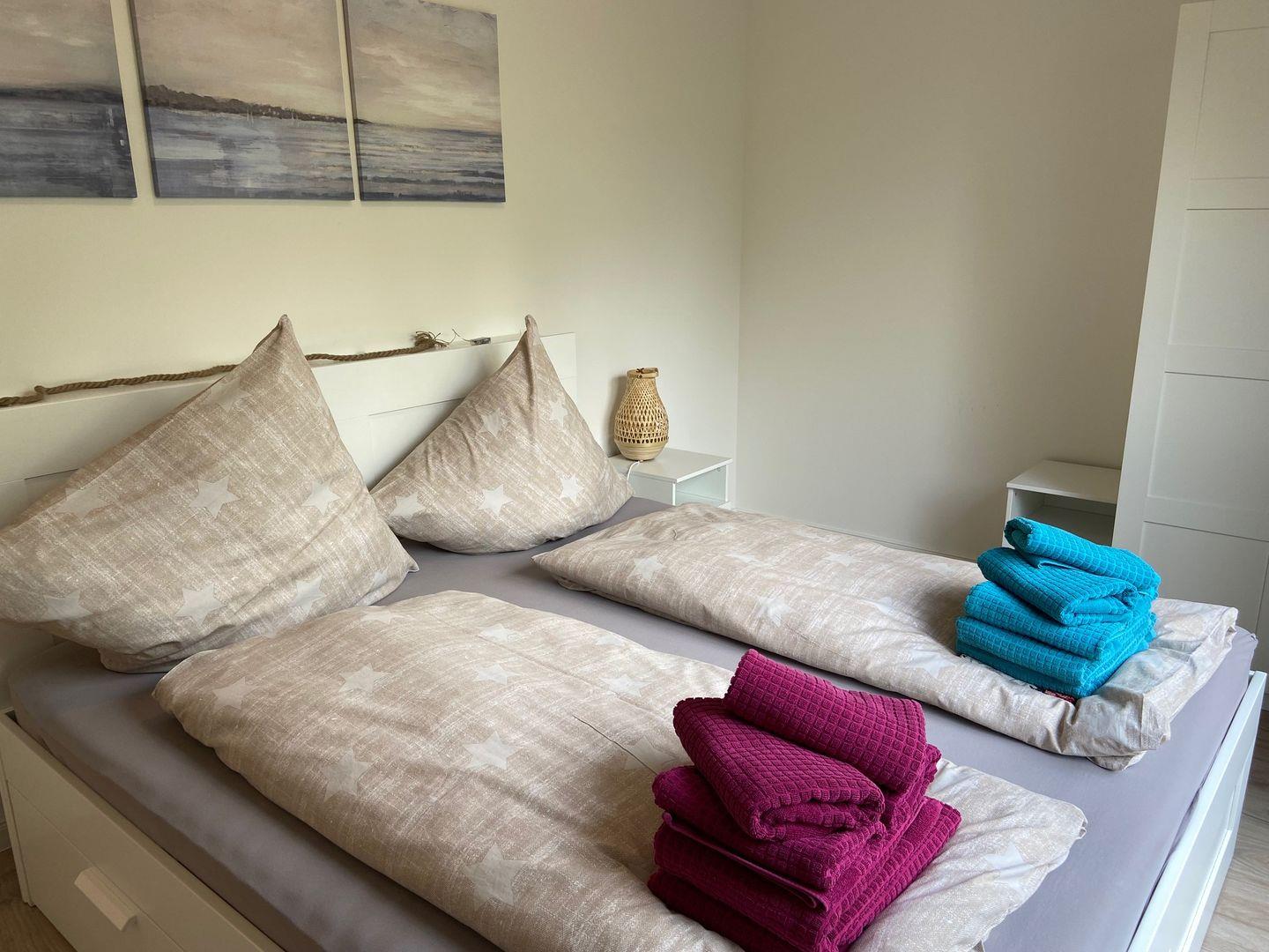 Das Highlight der Ferienwohnung Teske ist zweifellos das zweite Badezimmer, das sich im Dachgeschoss befindet und mit einer Badewanne ausgestattet ist. Die beiden Schlafzimmer mit je einem Doppelbett (180*200) sind ebenfalls im 2. Obergeschoss, auf der Hauptebene, untergebracht. Das Duschbad ist hell gestaltet und verfügt über eine ebenerdige Dusche.