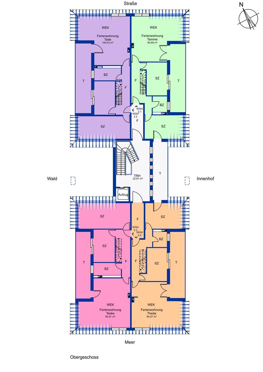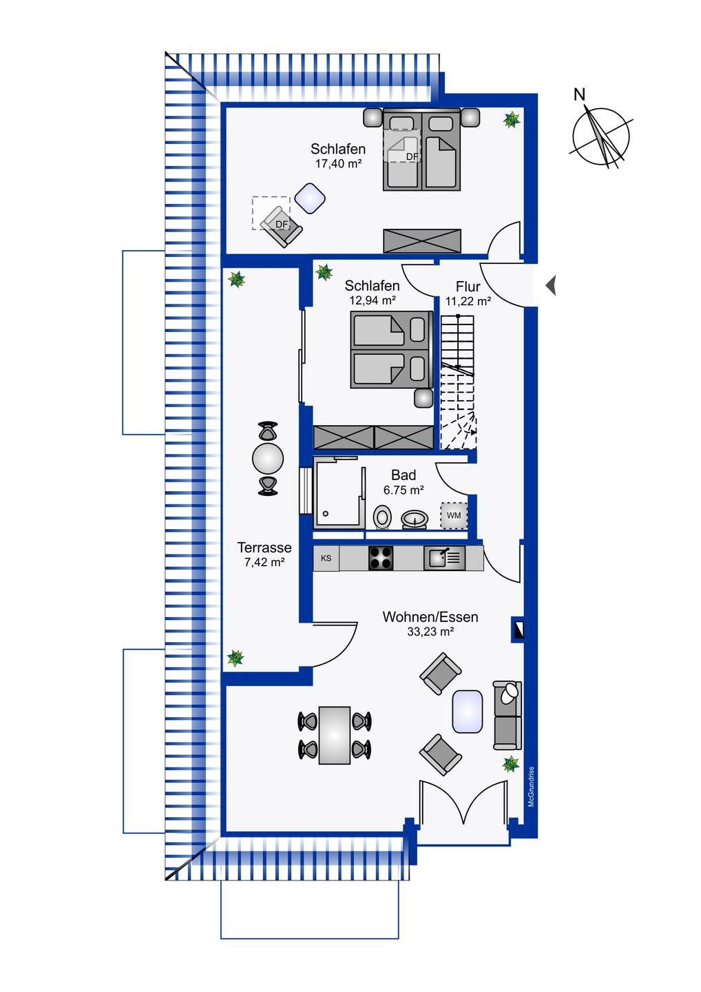 Die helle 2-geschossige Ferienwohnung Teske befindet sich in einem modernen Gebäudekomplex auf einem großen, grünen Gelände und lädt zu erholsamen Urlauben ein – perfekt für Paare, Freunde oder die kleine Familie. Sie ist liebevoll skandinavisch eingerichtet und bietet auf 100 m² reichlich Platz für bis zu 4 Personen plus 2 Babys. Kurze Wege zum Strand, zur Promenade und zu Restaurants machen sie zur idealen Basis für entspannte Tage. Die tolle Dachterrasse lädt zum gemeinsamen Verweilen ein.