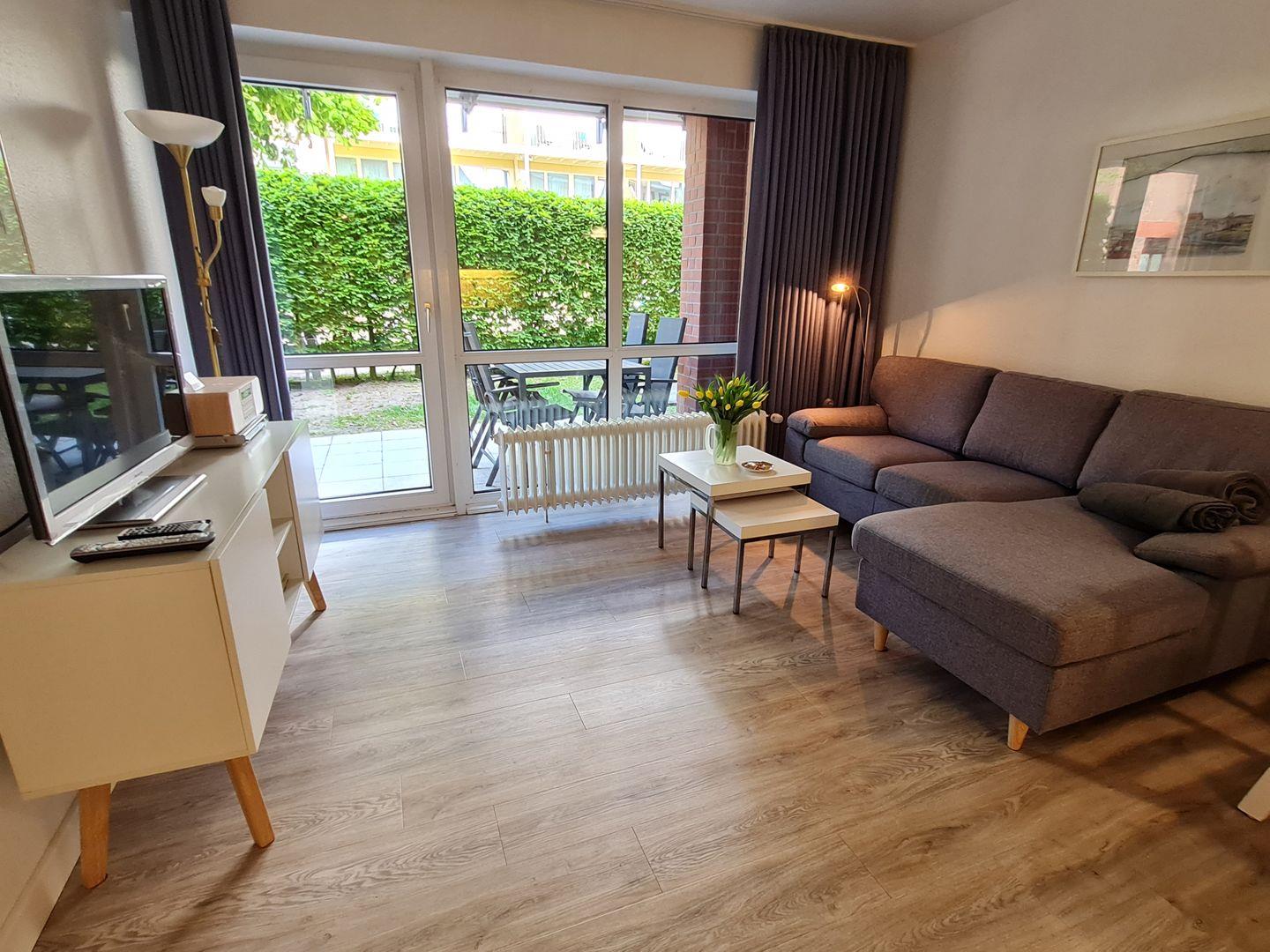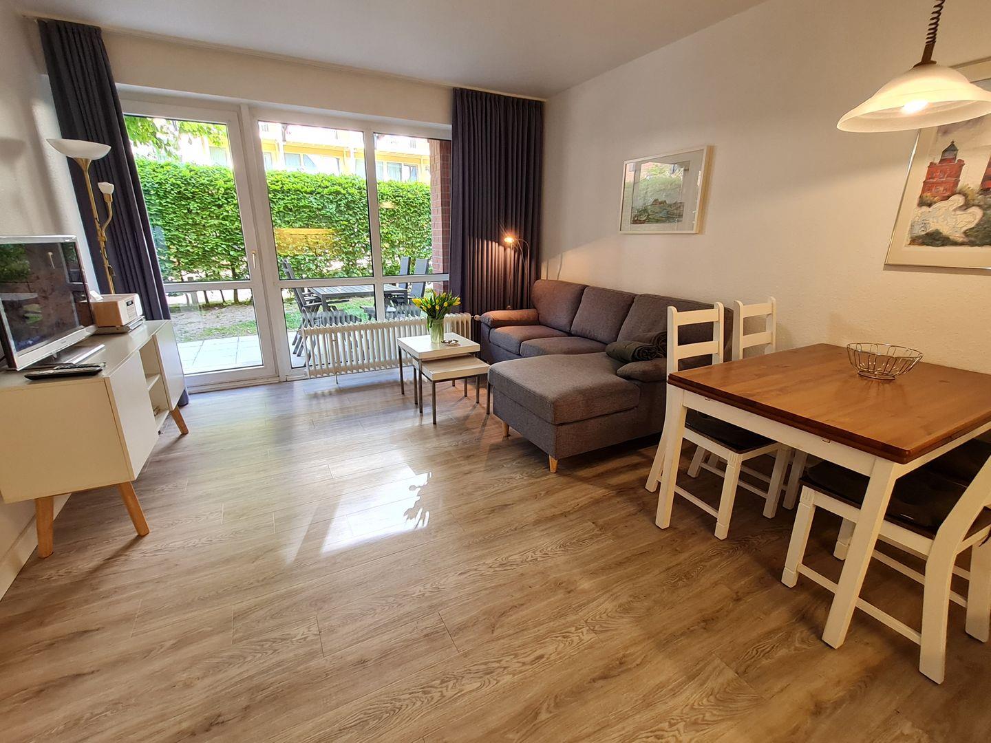 Helle Ferienwohnung Seeadler in Wyk auf Föhr, strandnah mit großer Terrasse und zentraler Lage.