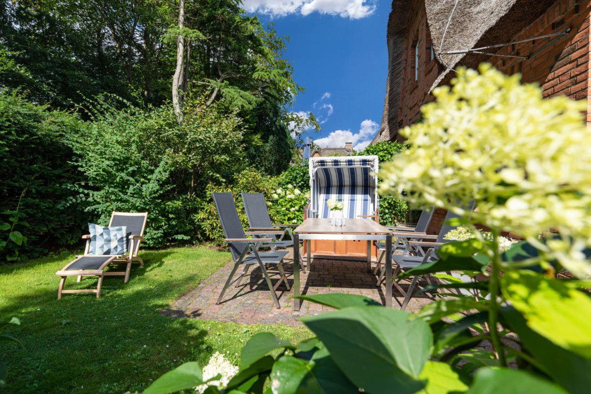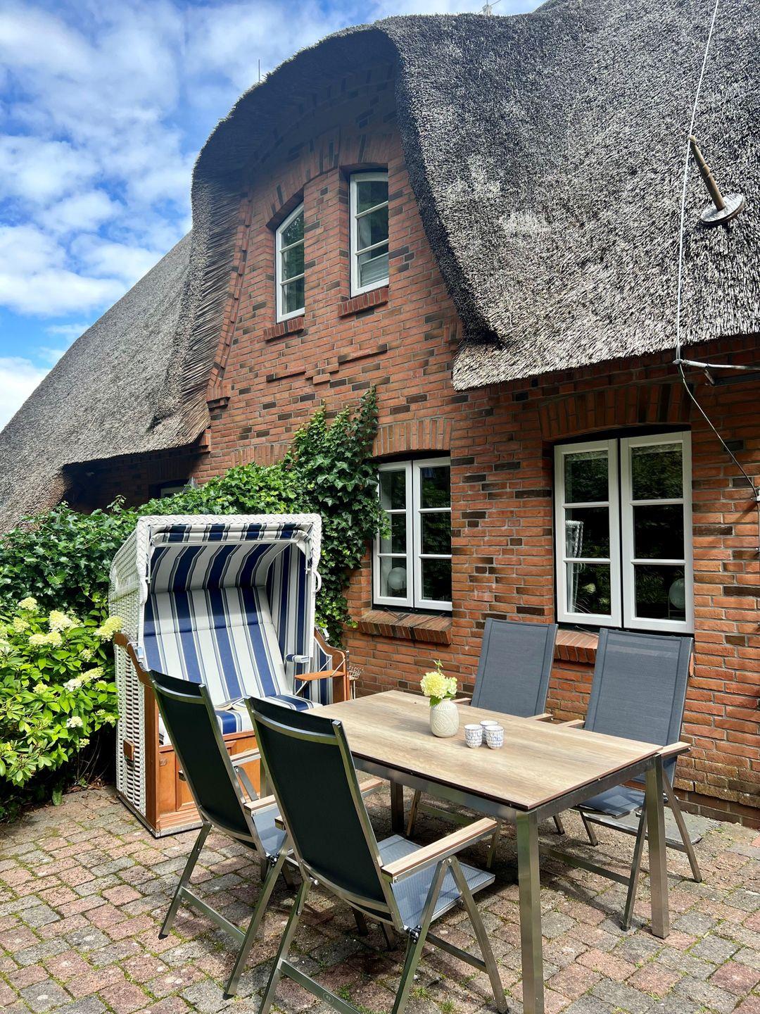 Komfortables reetgedecktes Ferienhaus Luettliv-Huus II nahe Strand mit Kamin und Garten in Wyk auf Föhr.