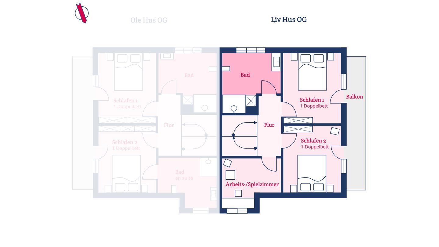 Die exklusive Doppelhaushälfte Liv Hus verfügt über 3 Schlafzimmer und 2 Bäder und bietet somit komfortabel Platz für bis zu 6 Personen zuzüglich einer Kleinkinderaufbettung. Auch bis zu 2 Hunde sind herzlich willkommen.