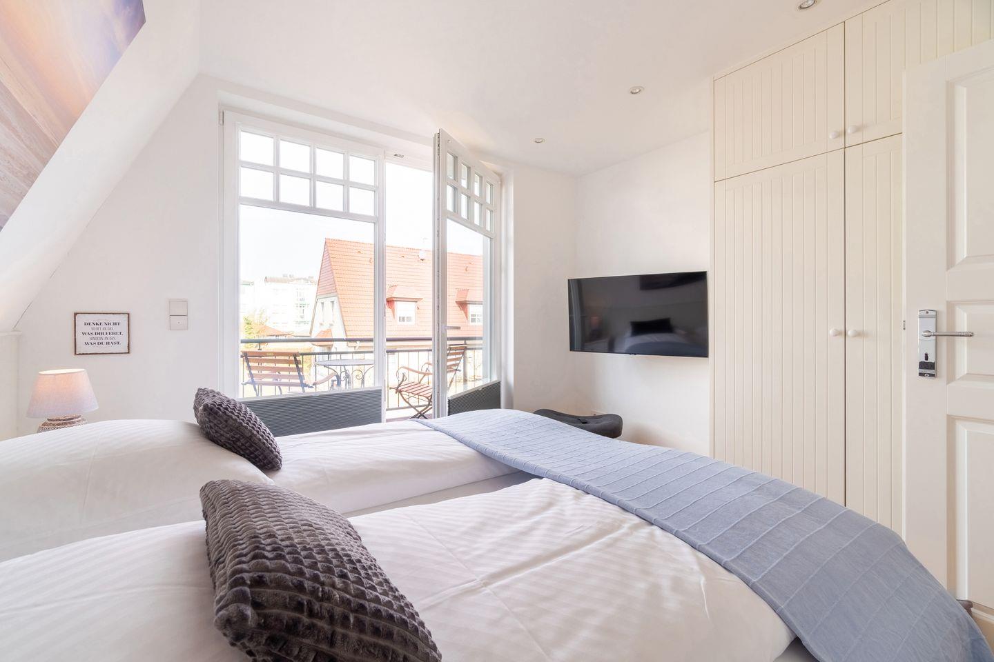 Zu den Highlights der Ferienunterkunft zählen wir u. A. die hauseigene Sauna, die Terrasse, die Schlafzimmer mit eigenem Balkon sowie die strandnahe Lage.