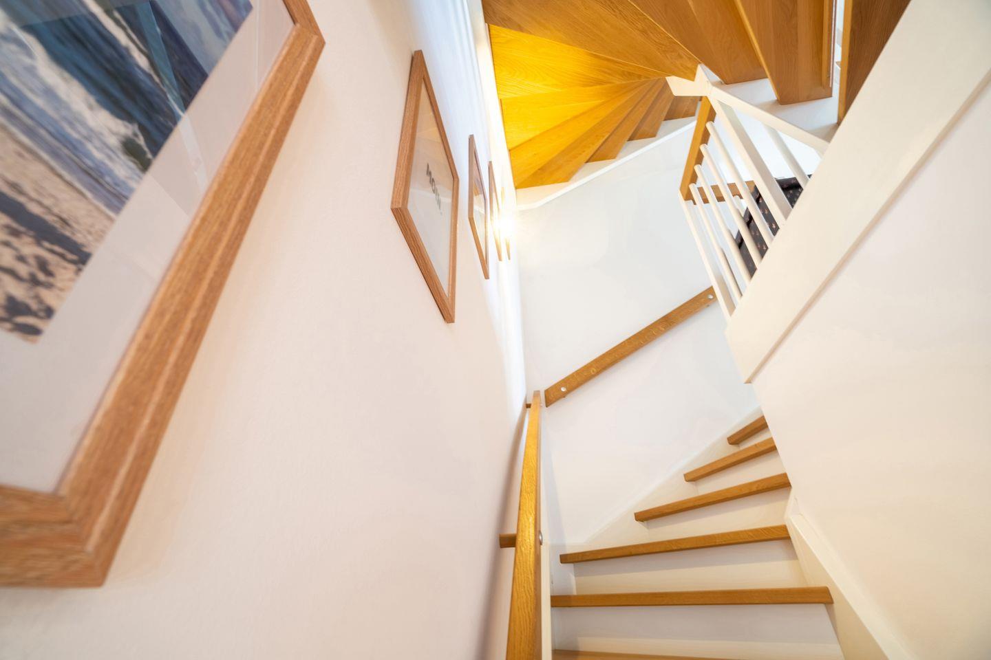 Im Souterrain befinden sich ein weiteres Schlafzimmer mit Doppelbett, ein Duschbad mit bodengleicher Dusche, die hauseigene Sauna und ein Hauswirtschaftsraum mit Waschmaschine.
