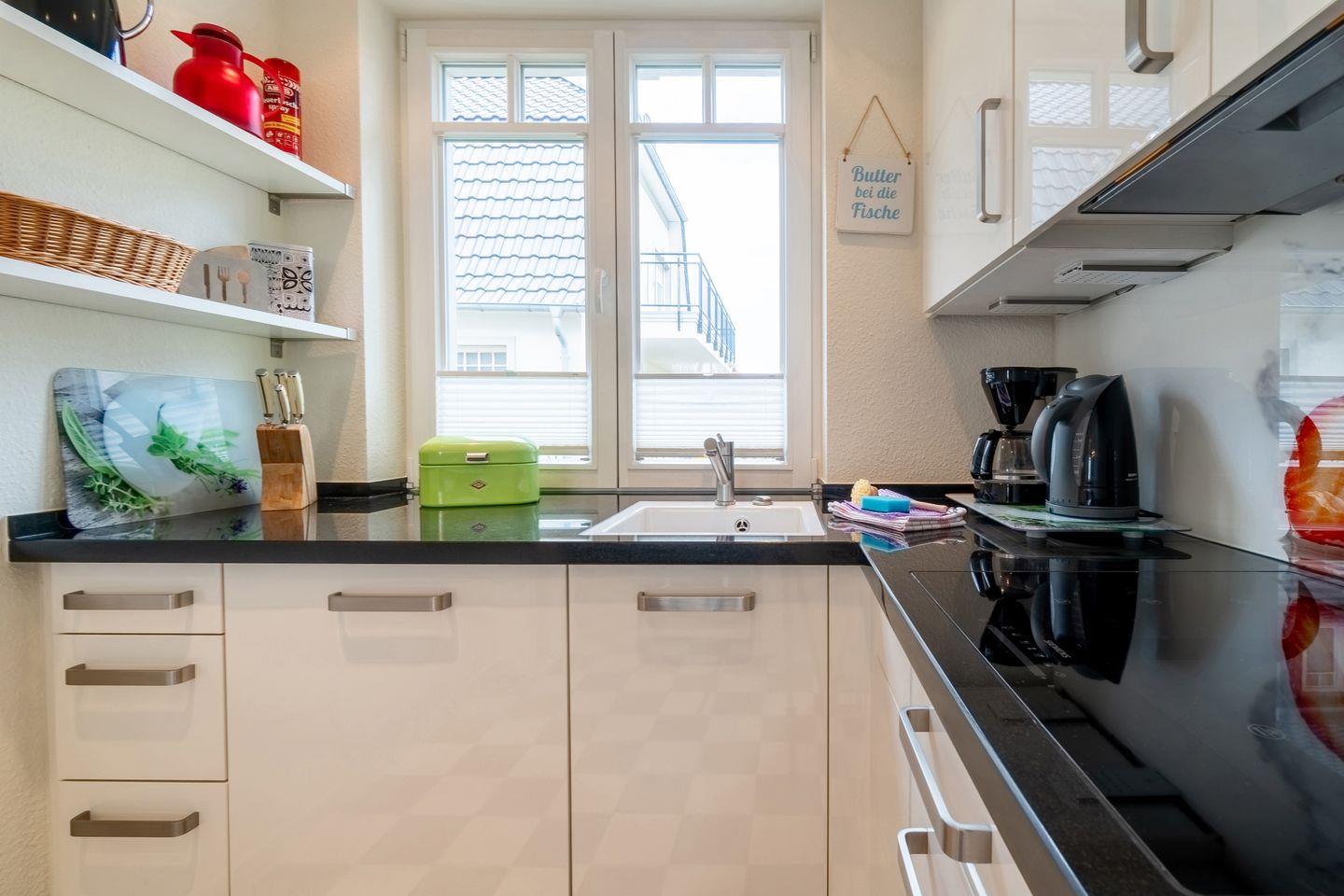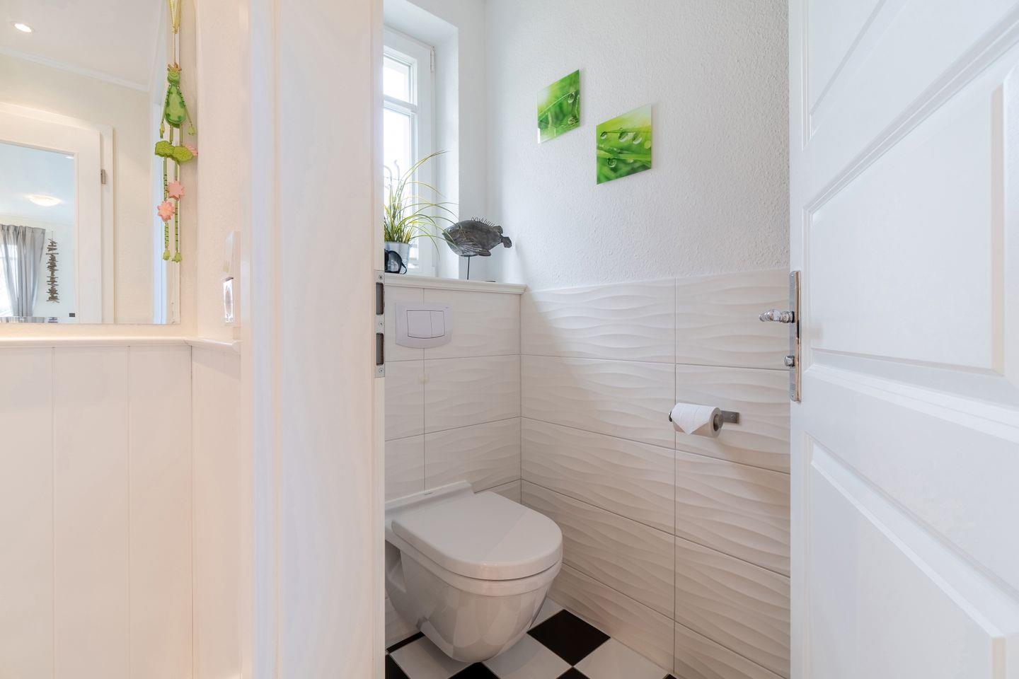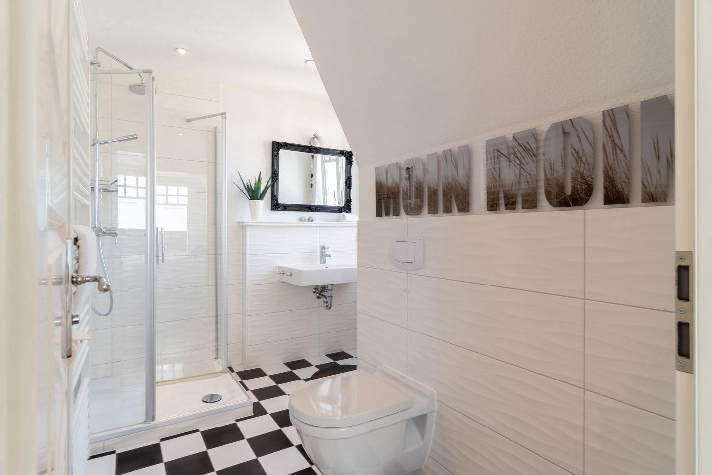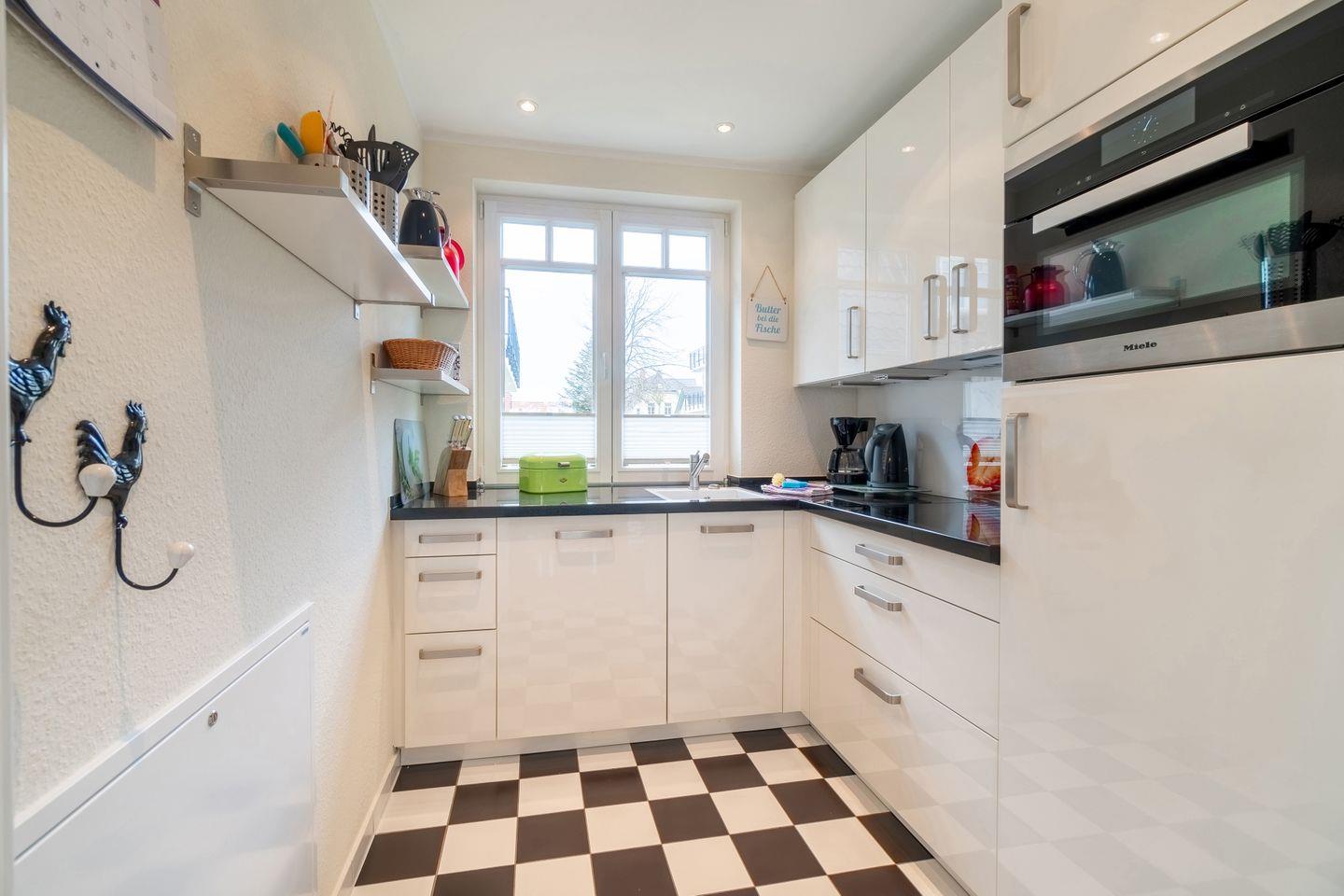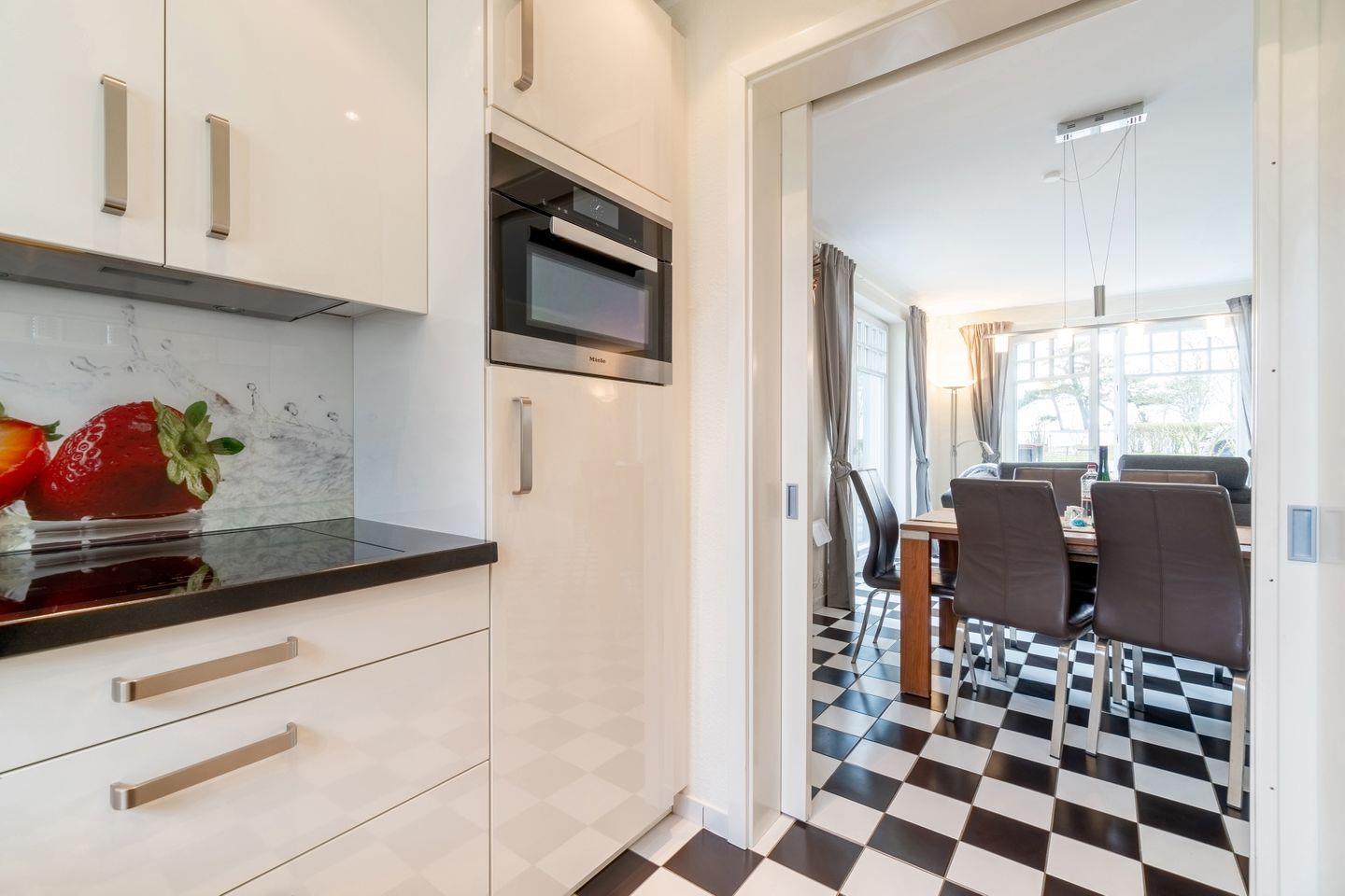 Im Erdgeschoss befinden sich das großzügige Wohn- und Esszimmer mit direktem Terrassenzugang und die Küche, die sich über eine Schiebetür vom Wohnbereich trennen lässt, sowie ein Gäste-WC. Zudem steht Ihnen ein Saisonstrandkorb direkt am Strand zur Verfügung, im Strandabschnitt 13-19.