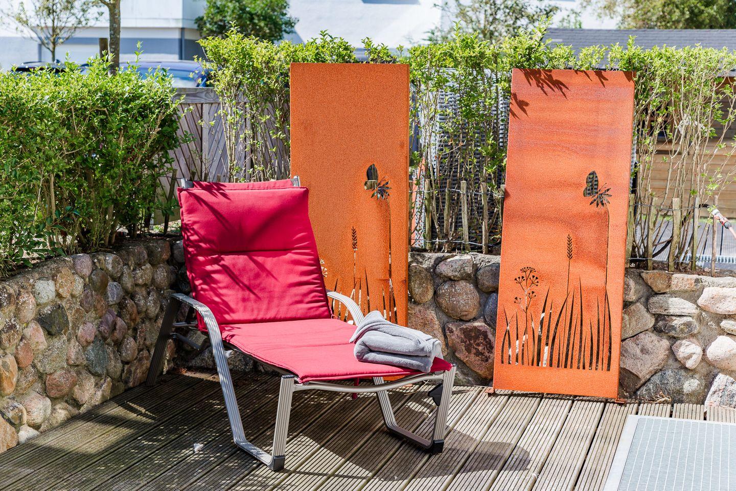 Exklusive Doppelhaushälfte Ole Hus auf Föhr mit Sauna, Terrasse und strandnaher Lage für erholsame Urlaubstage.
