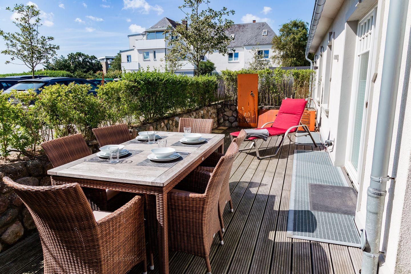 Zu den Highlights der Ferienunterkunft zählen wir u. A. die hauseigene Sauna und die Terrasse sowie die strandnahe Lage.