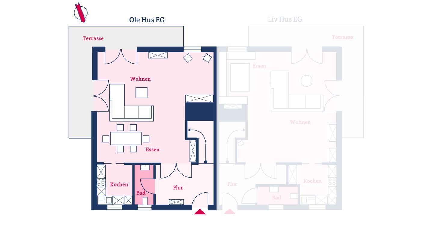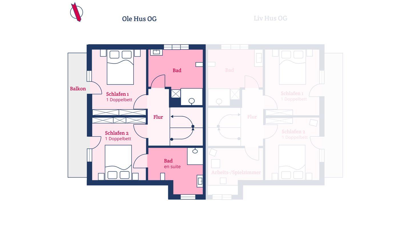 Die exklusive Doppelhaushälfte Ole Hus verfügt über 3 Schlafzimmer und 3 Bäder und bietet somit komfortabel Platz für bis zu 6 Personen zuzüglich einer Kleinkinderaufbettung. Auch bis zu 2 Hunde sind herzlich willkommen.