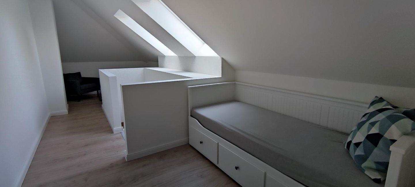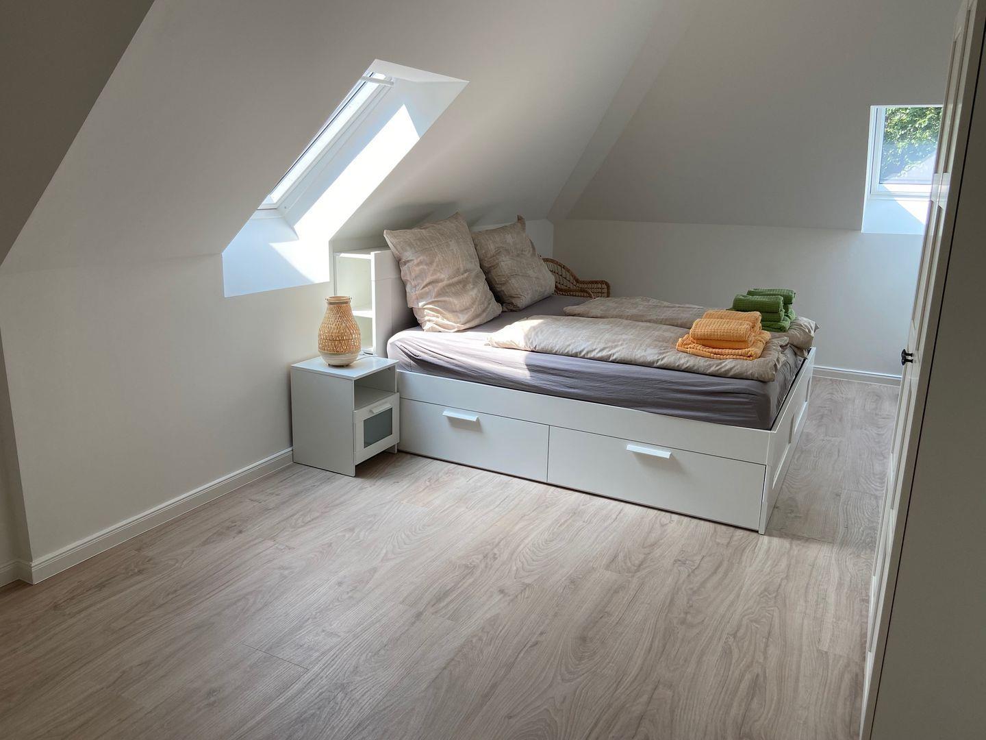 Die beiden Schlafzimmer im 2. Obergeschoss sind mit bequemen Doppelbetten (180*200) ausgestattet, die Ihnen einen erholsamen Schlaf garantieren. Über eine Treppe gelangen Sie zum zweiten Highlight der Ferienwohnung: Das zweite Badezimmer, das über eine Badewanne und Tageslicht verfügt. Zusätzlich gibt es in diesem offenen Dachbodenbereich ein Tandembett, das zu einer Liegefläche mit 160*200cm erweitert werden kann