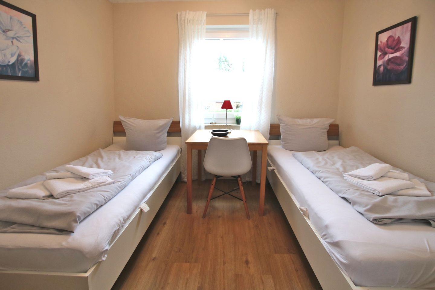 - Schlafzimmer mit zwei getrennt stehenden Betten und Kleiderschrank