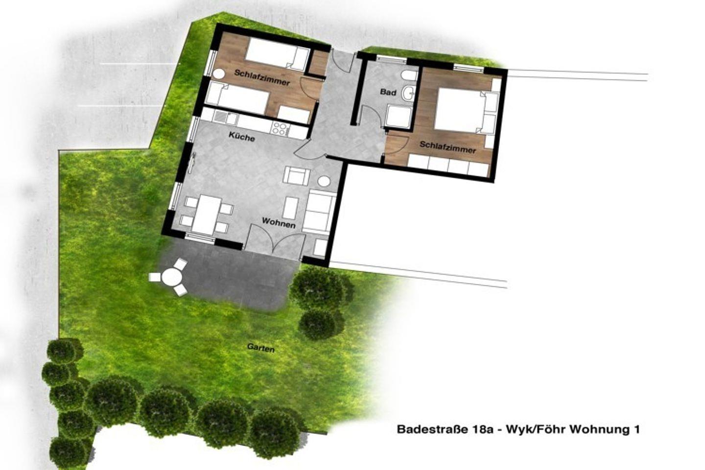 Gemütliche 3-Zimmer-Ferienwohnung im ruhigen Zentrum von Wyk auf Föhr mit Terrasse und WLAN.
