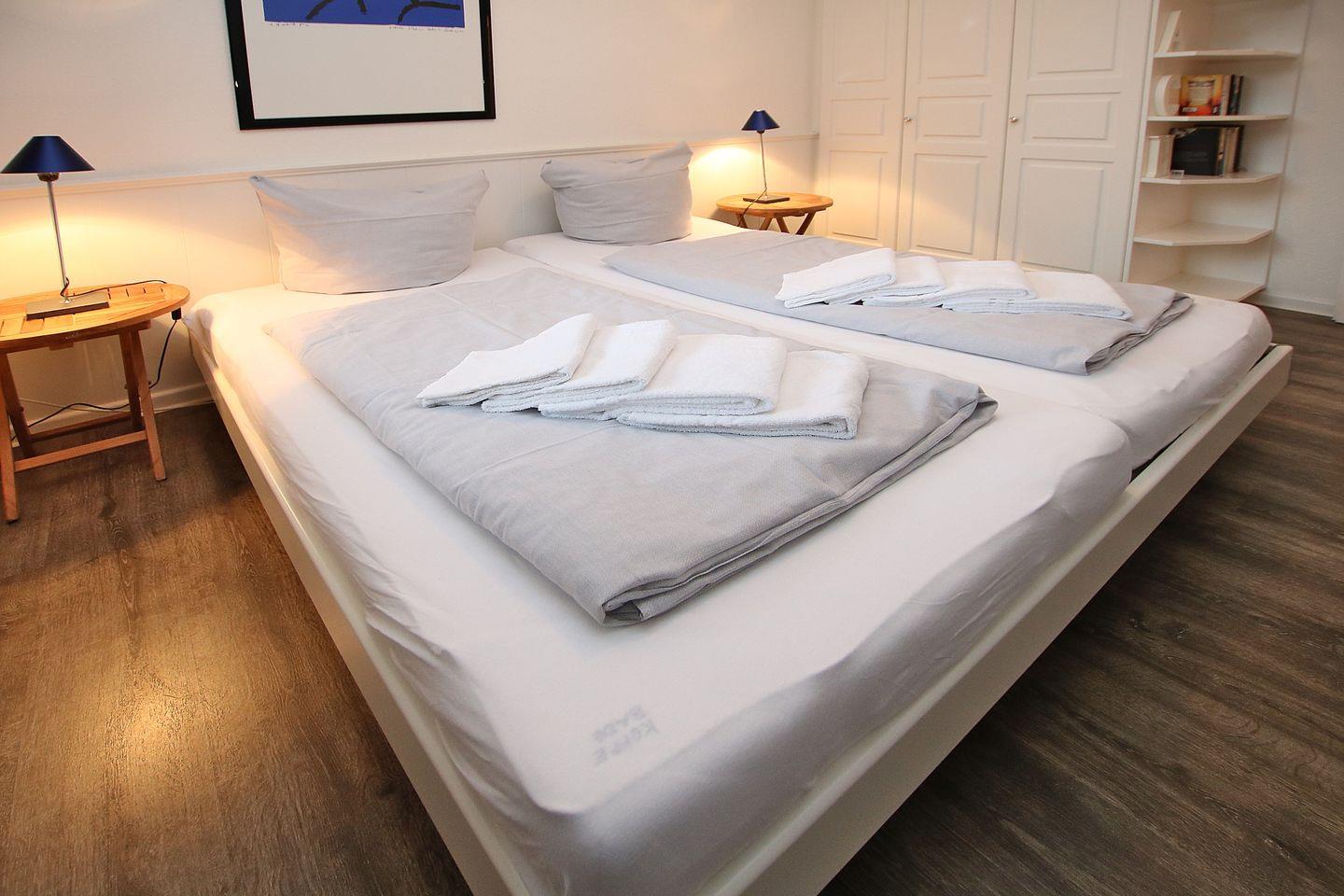 - Hauptschlafzimmer mit Doppelbett, Schlafzimmer 2 mit zwei Einzelbetten.