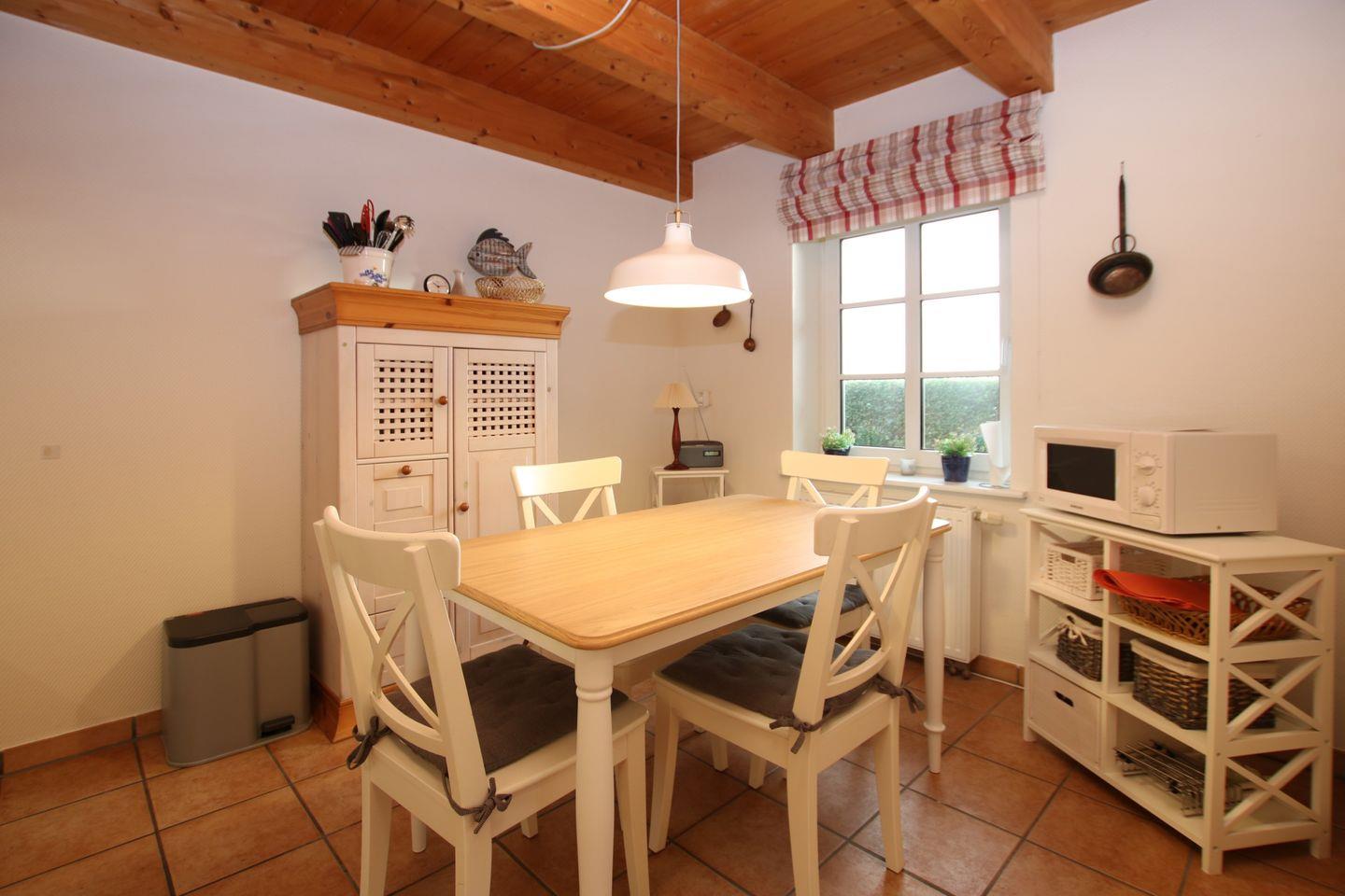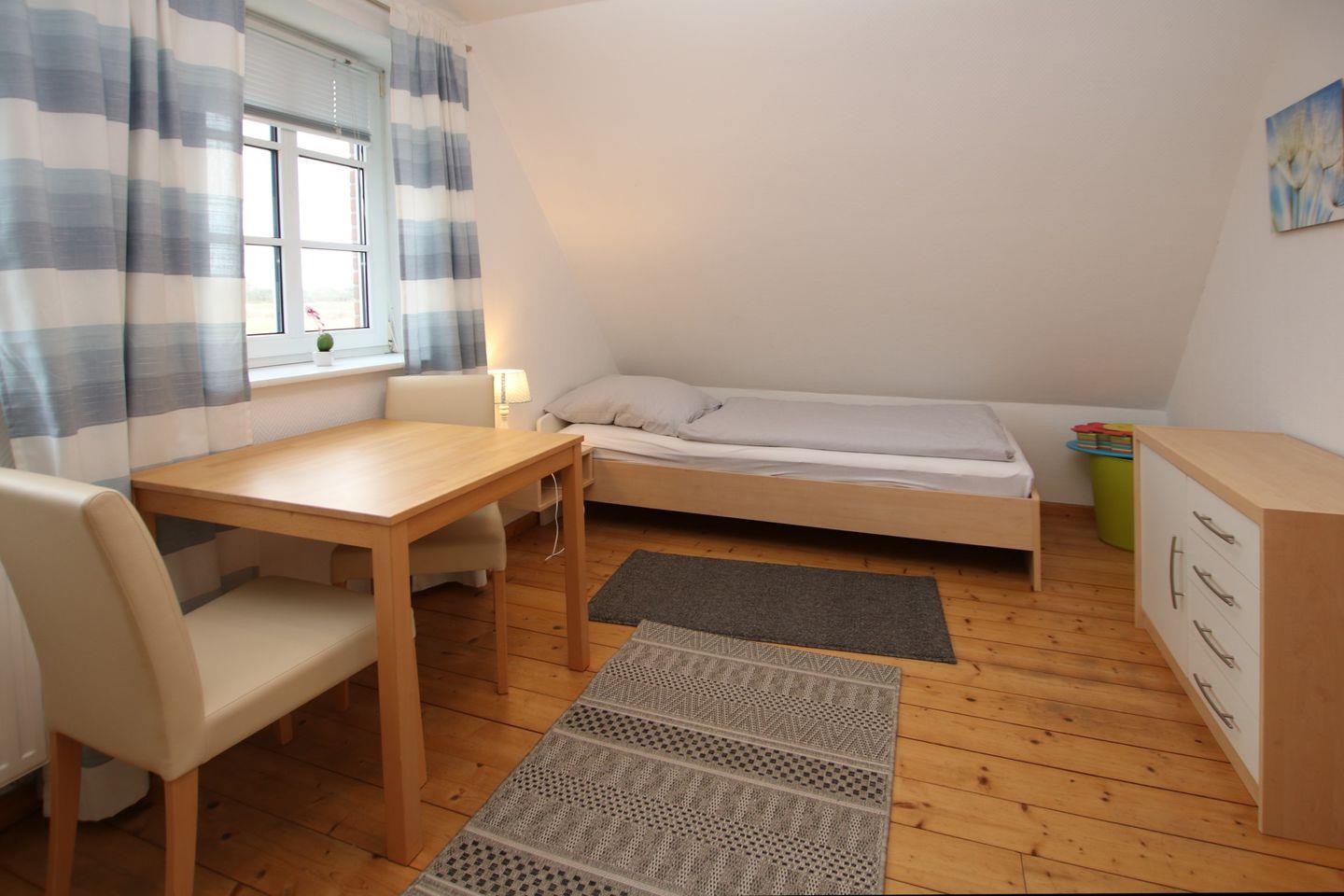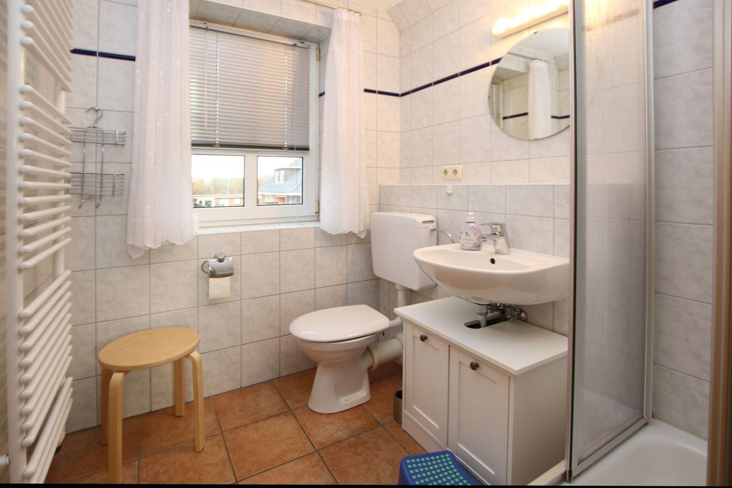 Willkommen in Wyk auf Föhr in diesem freistehenden Nichtraucher-Ferienhaus , am Fehrstieg 1c. Die 3- Zimmer erstrecken sich über 75m² und 2 Etagen. Es liegt in einem schönen, großen eingewachsenen Garten mit Terrasse. Im ERDGESCHOSS ist das Wohnzimmer mit einer gemütlichen Doppelcouch und zwei Sesseln. Von hier geht es auch in das Obergeschoss. Ebenfalls im Erdgeschoss ist die SEPARATE KÜCHE mit Esstisch und vier Stühlen. Im Gäste- WC steht auch eine Waschmaschine. Das Erdgeschoss ist mit Fliesen ausgelegt und hat eine Holzdecke.