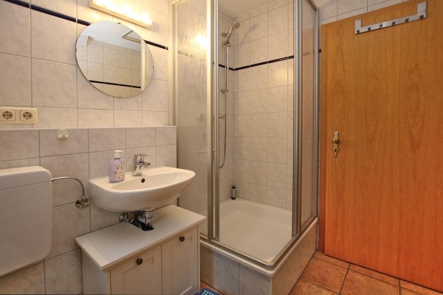 Im OBERGESCHOSS ist das Schlafzimmer 1 mit einem Doppelbett (1,80x2,00m) und Kleiderschrank, und das Schlafzimmer 2 mit 2 Einzelbetten (0,90x2,00m) Das Obergeschoss ist ausgelegt mit einem Holzfußboden. Das Badezimmer ist ausgestattet mit Dusche und WC. Insgesamt ist das Haus sehr geschmackvoll und sehr gut ausgestattet. W-LAN und ein Telefon mit Flatrate in das Deutsche Festnetz sind vorhanden.