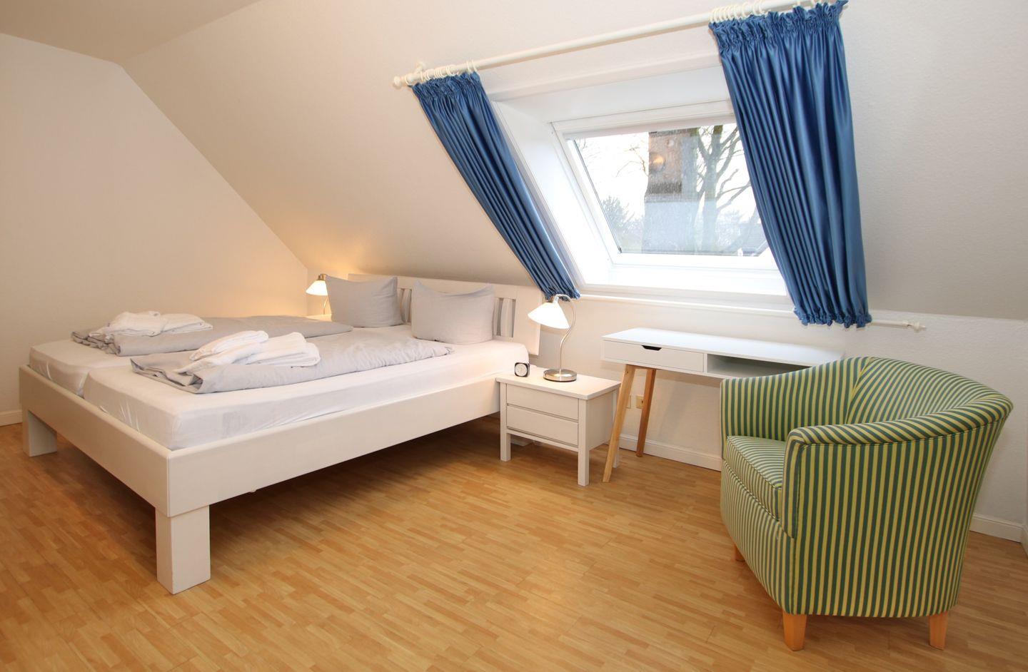 - Schlafzimmer 1 mit Doppelbett, Kleiderschrank, Schreibtisch und TV