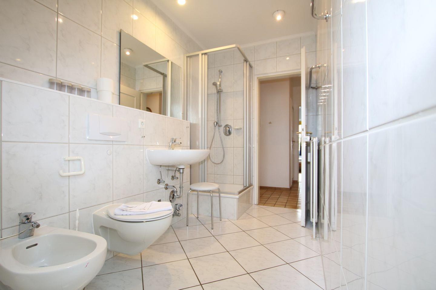 - Badezimmer mit Dusche/WC, Bidet