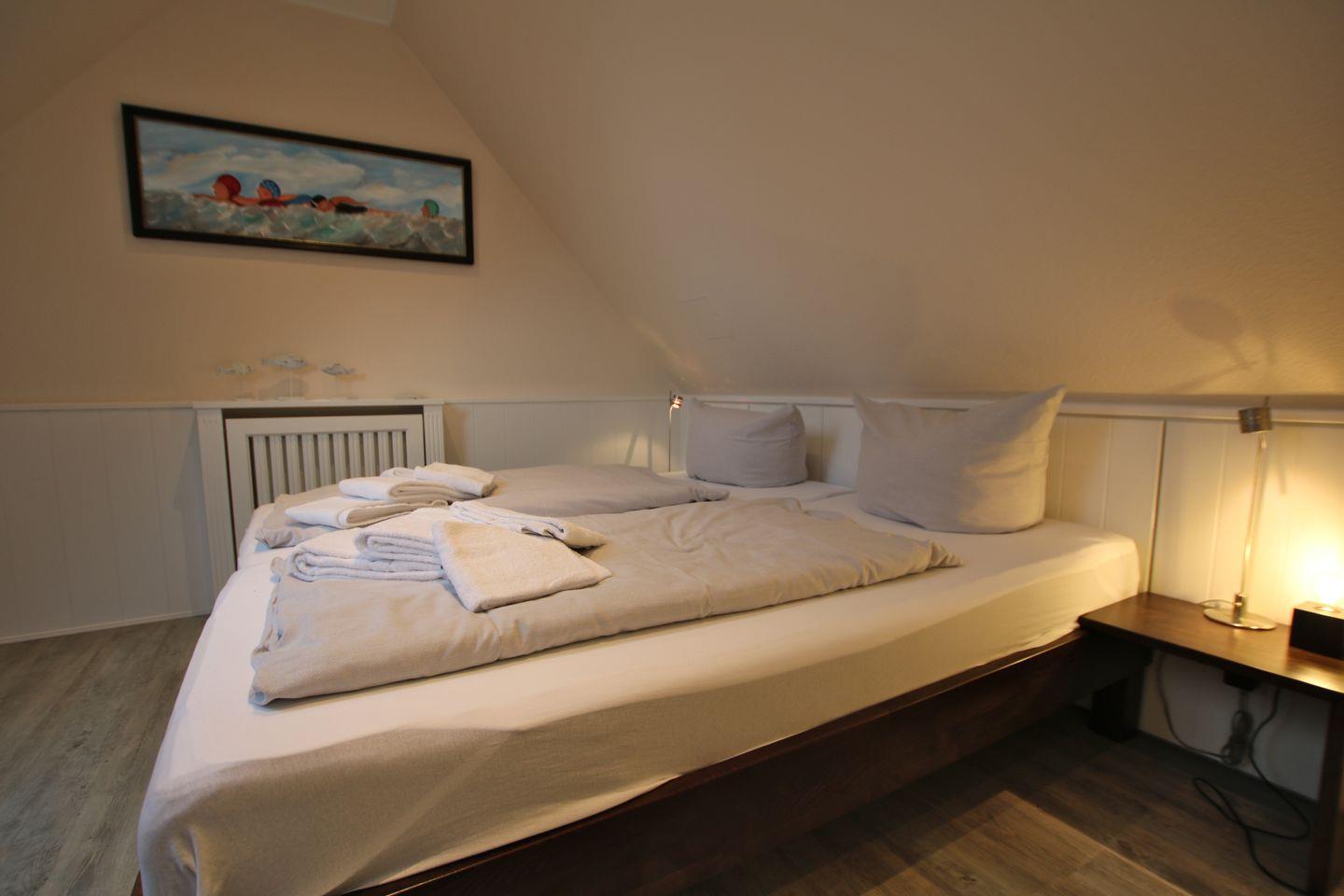 - Schlafzimmer 3 mit Doppelbett und Kleiderschrank im Dachgeschoß