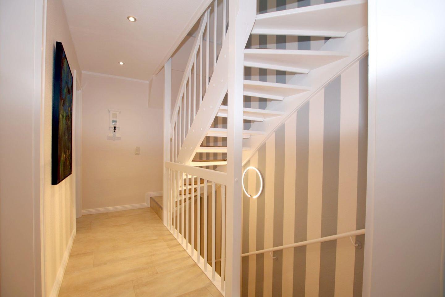 Dieser Raum ist zur Treppe hin offen. Im Keller stehen für Sie eine Münzwaschmaschine und -trockner bereit. Der große Garten rund um das Haus darf mit genutzt werden.