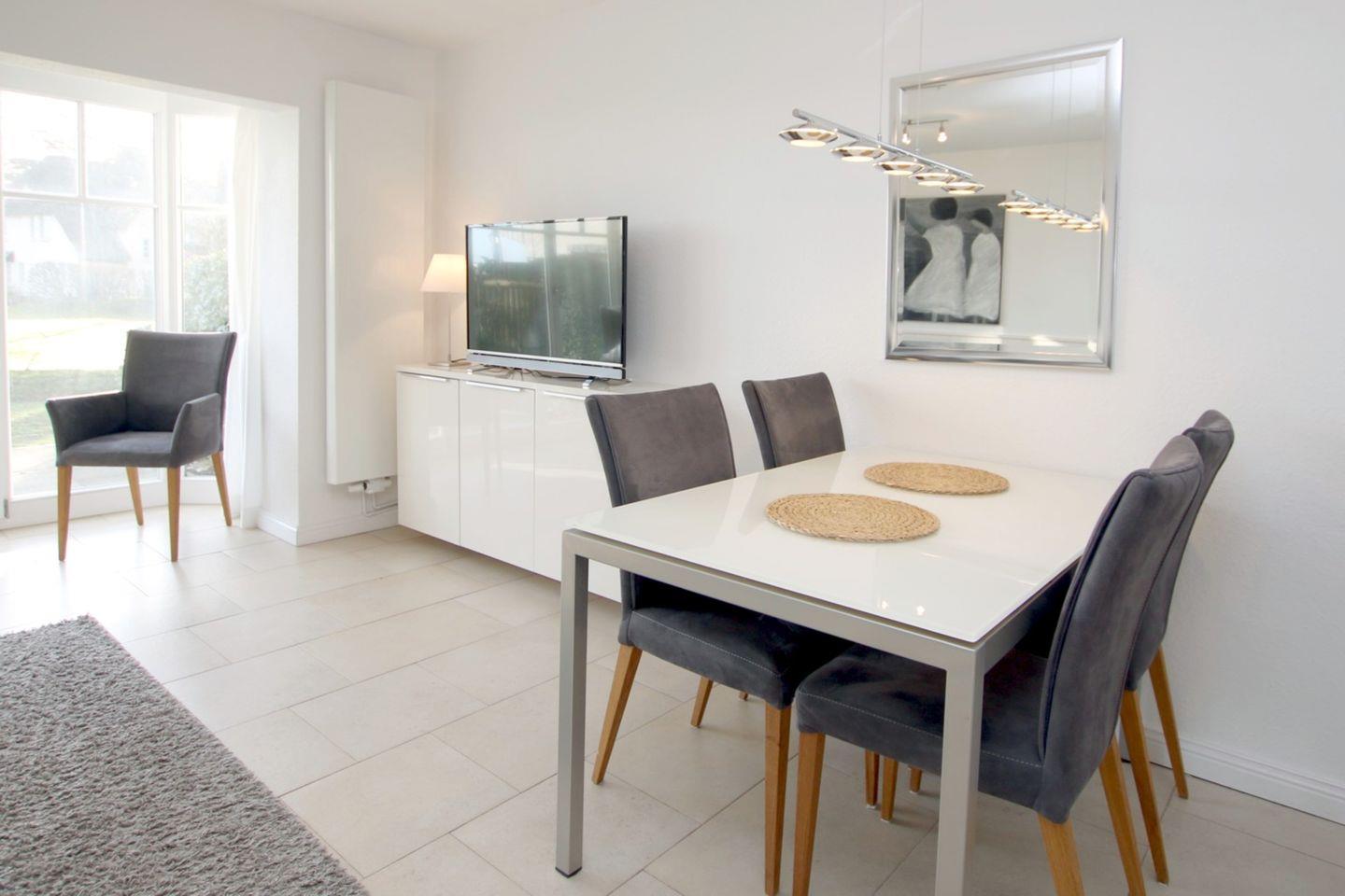 Komfortable 4-Zimmer-Hausscheibe in Wyk auf Föhr, nur 50m vom Strand entfernt, mit Garten, Terrasse und moderner Ausstattung.