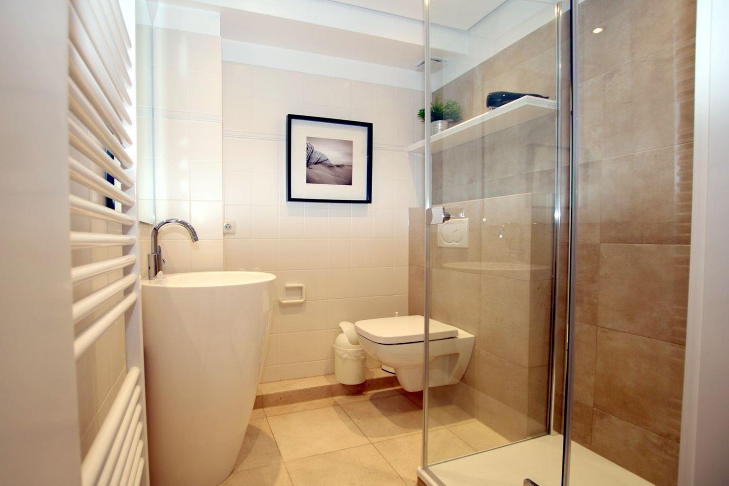 Im Erdgeschoss befindet sich schönes Badezimmer mit Dusche und WC. In der 1. Etage befindet sich ein weiteres Bad mit Wanne und WC,
