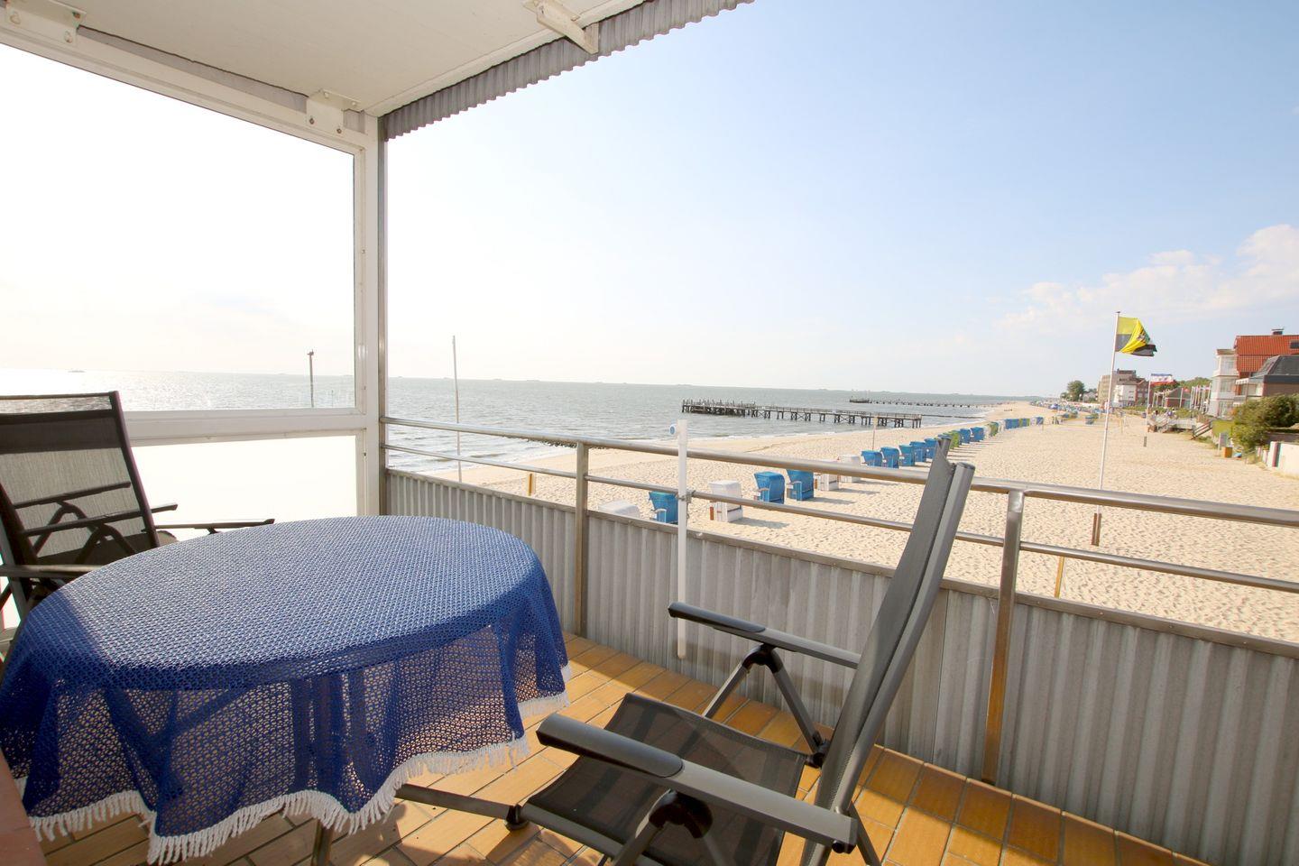Moderne 2-Zimmer-Ferienwohnung in erster Strandlage in Wyk auf Föhr mit herrlichem Meerblick und Balkon.