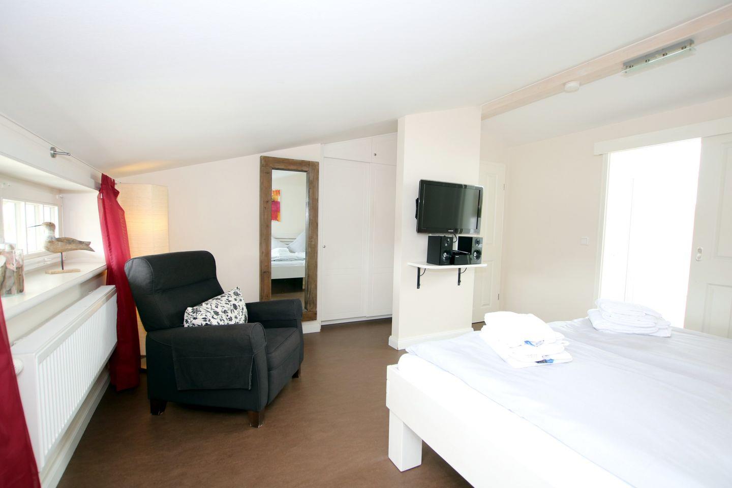 - Schlafzimmer 2 im OG mit Doppelbett, SAT/TV, Kleiderschrank und Sessel