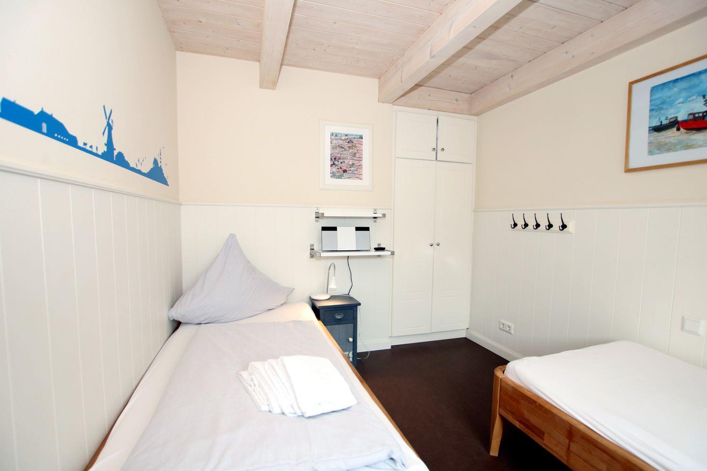 - Schlafzimmer 1 im EG mit Einzelbetten und Kleiderschrank