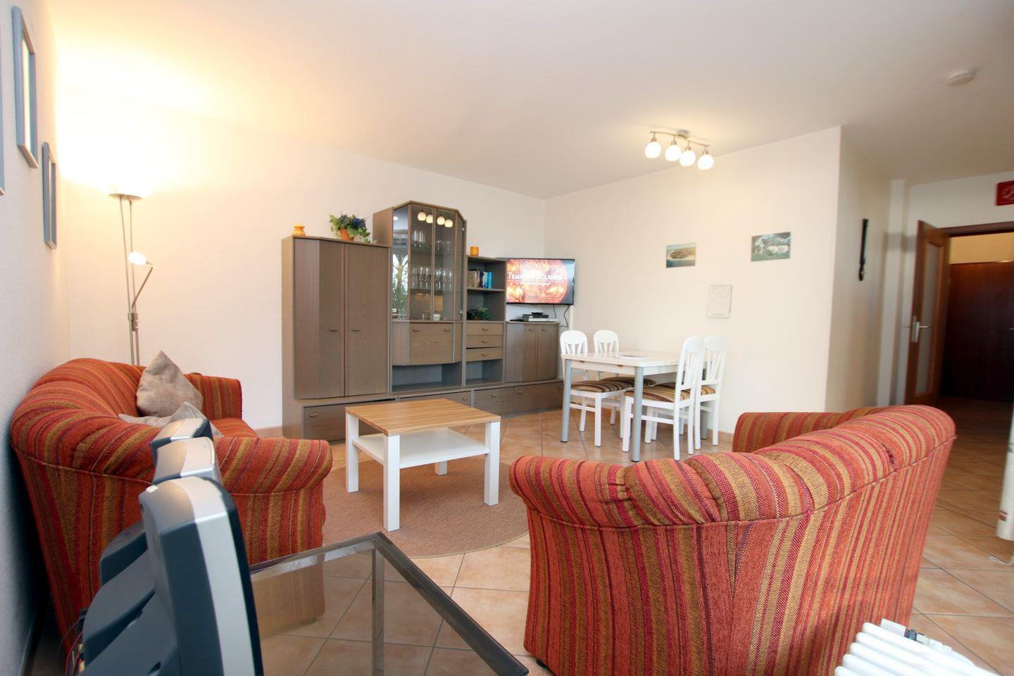 SCHLAFZIMMER 2 mit 1 Einzelbett 1,20 x 2 m und kleinem Kleiderschrank. BAD mit Dusche und WC. Kleiner Abstellraum. Im KELLER stehen Münzwaschmaschine, -trockner und Fahrradabstellraum zur Verfügung. Zum Strand sind es nur wenige Schritte. Einkaufsmöglichkeiten befinden sich in der Nähe. Zum Zentrum, Familienbad und Kurmittelhaus sind es ca. 15 - 20 Minuten Fußweg. Die Wohnung ist hell und freundlich eingerichtet und komplett mit Fliesen ausgelegt. Balkon mit 4 Stühlen und Tisch. Eine gemütliche und komfortable Wohnung direkt am Strand.