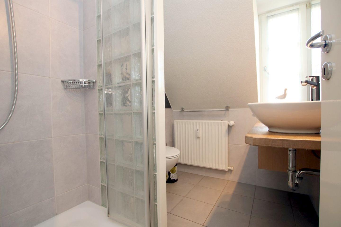 Ferienwohnung in Wyk auf Föhr, Lüttmarsch 13, Whg. Nr. 6 (ca. 35 qm), 2-Zimmer-Nichtraucherwohnung in der 1. Etage mit Südbalkon. WOHNZIMMER: Esstisch mit 3 Stühlen, 2 er Couch, 1 Sessel, Südbalkon mit 2 Stühlen. Separate Küche mit allen Extras. BAD: Dusche/WC. Vom Flur führt eine offene Treppe ins Dachgeschoss, dort stehen 2 Einzelbetten und ein Einbauschrank zur Verfügung.