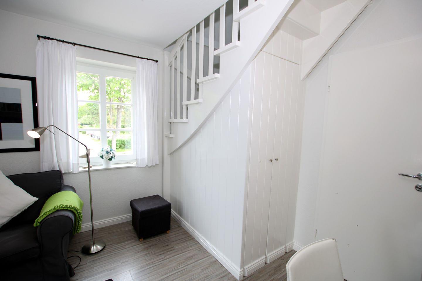 - Vom Flur führt eine offene Treppe ins Dachgeschoss, dort stehen 2 Einzelbetten