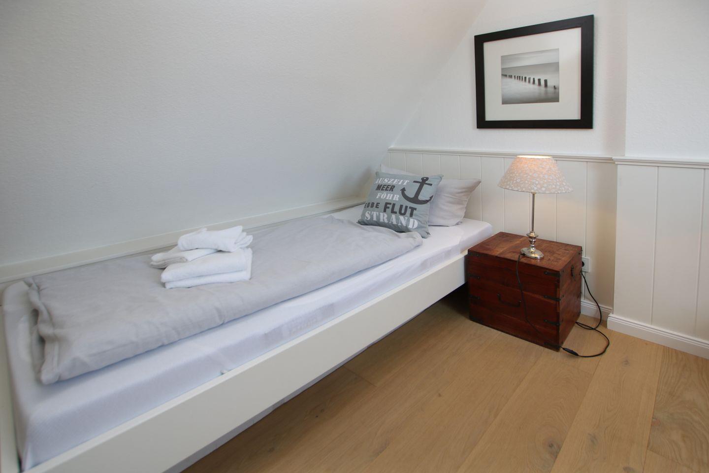 - Vom Flur führt eine offene Treppe ins Dachgeschoss, dort stehen 2 Einzelbetten