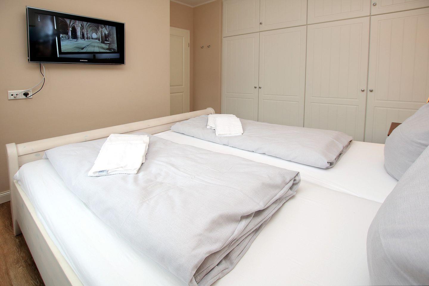 - Schlafzimmer mit Doppelbett (200 x 200cm) und LCD- TV
