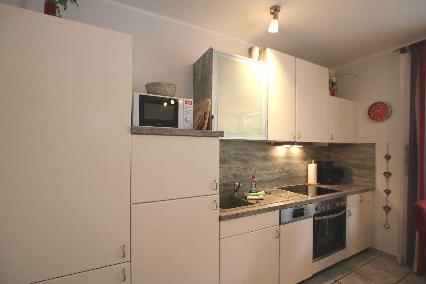 - Wohnzimmer mit Eckcouch (Schlaffunktion), Couchtisch, Esstisch mit vier Stühlen, Küchenzeile mit allem was man braucht