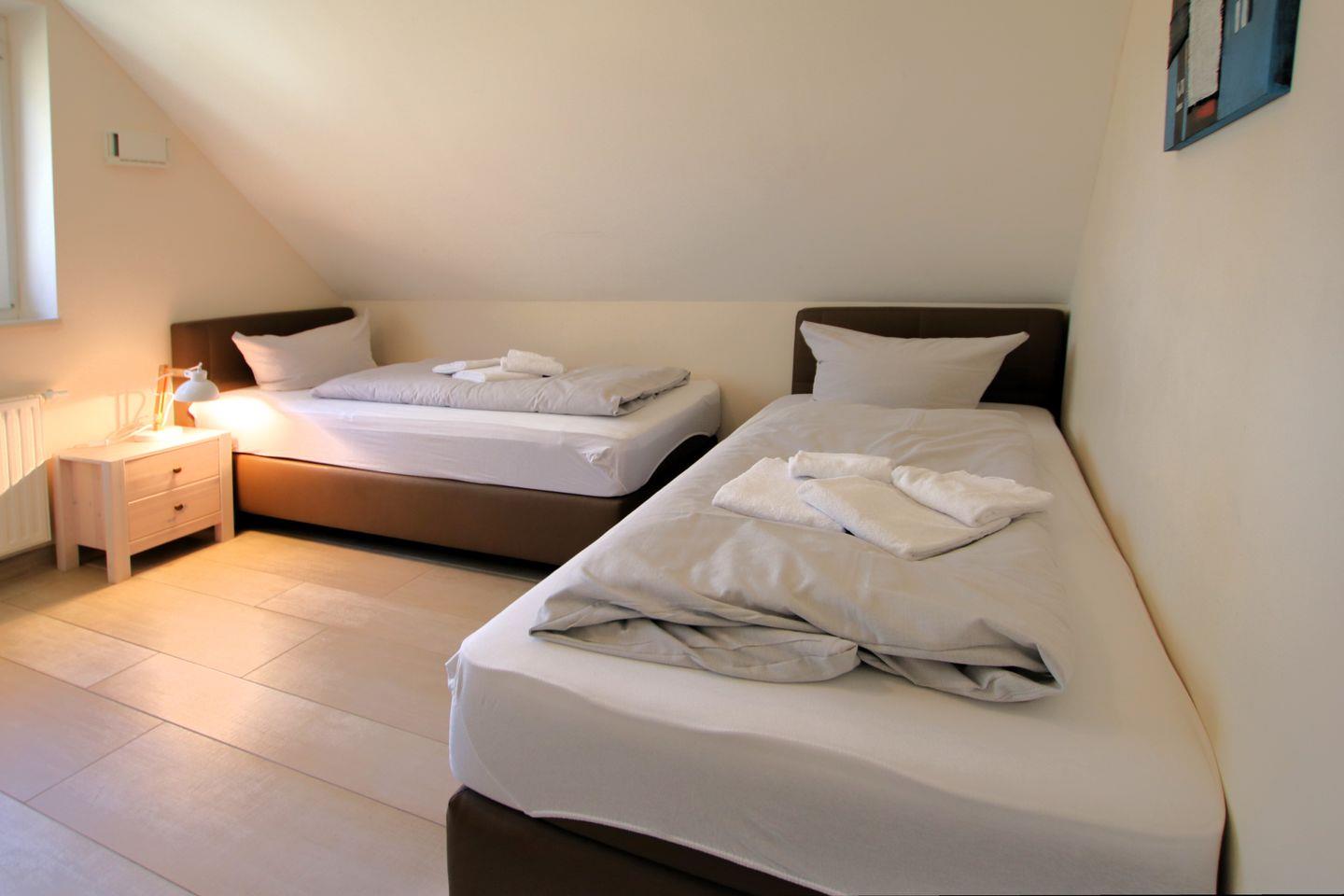 - Schlafzimmer 3 mit zwei Boxspring- Einzelbetten (90 x 200 cm)