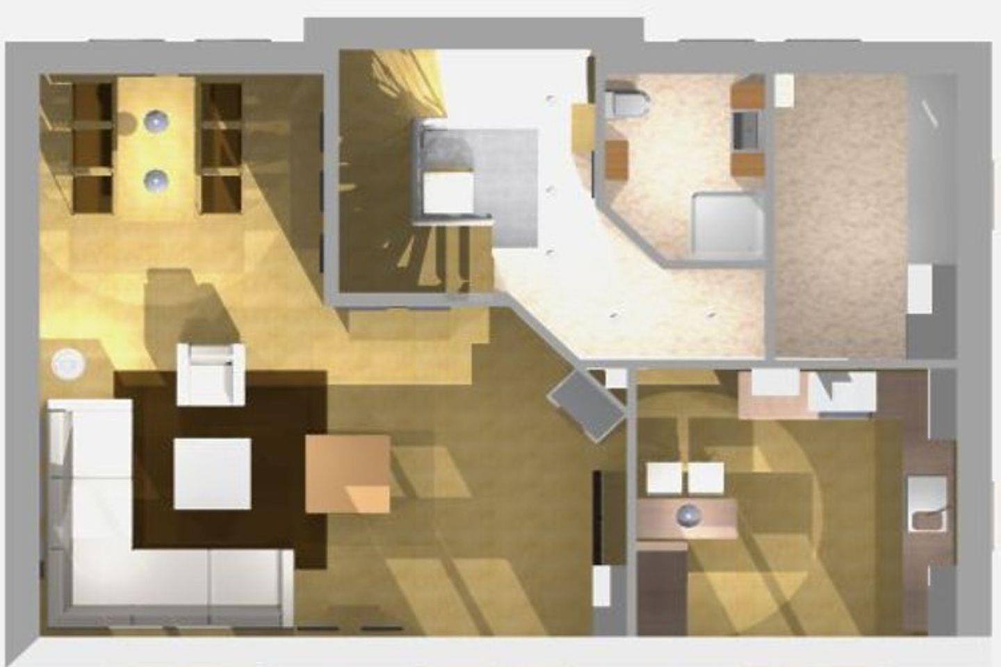 4-Zimmer über 2 Etagen. Im ERDGESCHOSS: WOHNZIMMER mit Ledercouch, Couchtisch, Kaminofen und Esstisch mit 6 Stühlen. Separate Küche mit Komfort Ausstattung. BAD 1 mit Dusche/WC.