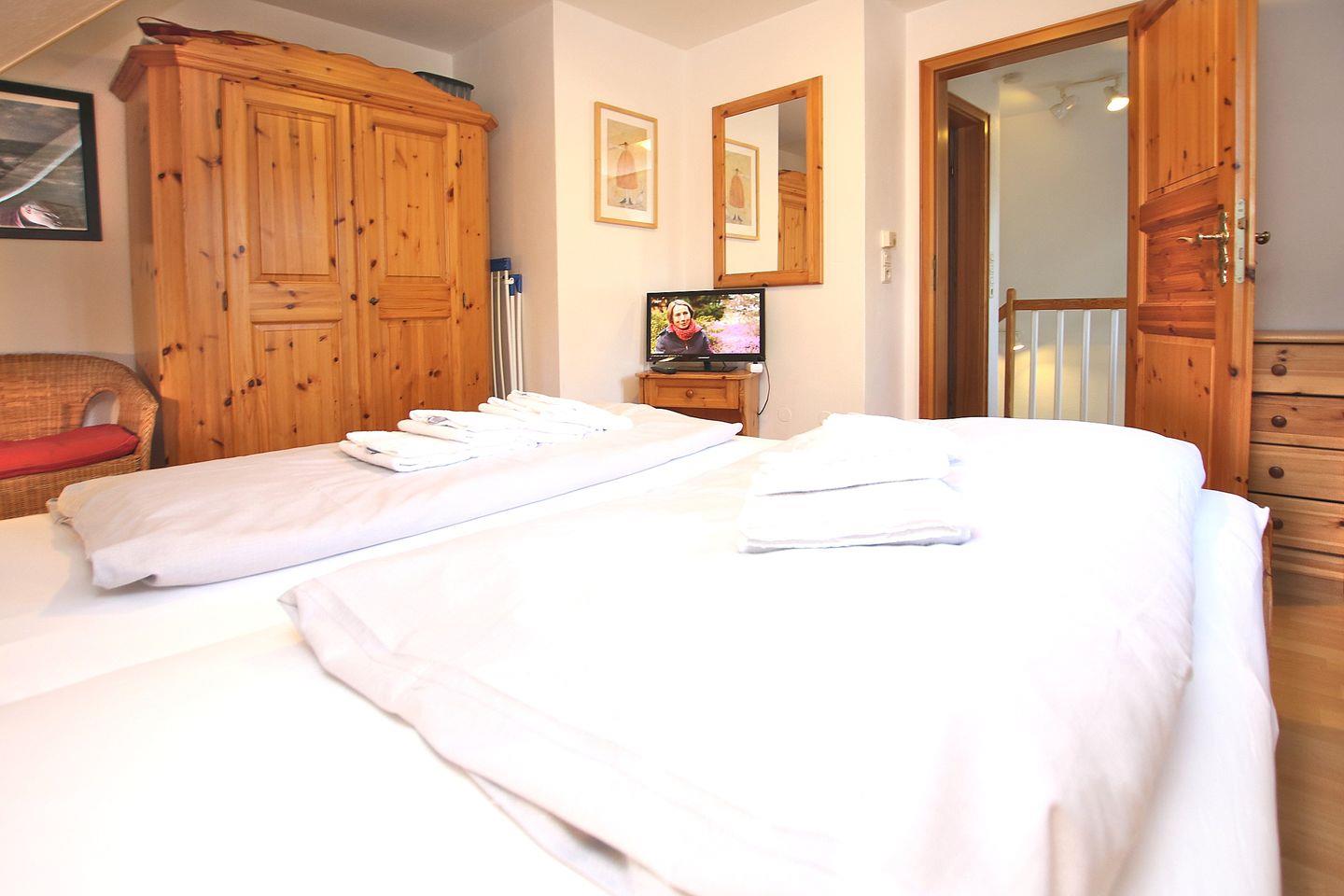 - Schlafzimmer mit Doppelbett (1,80x2,00m), 2. TV, Kleiderschrank
