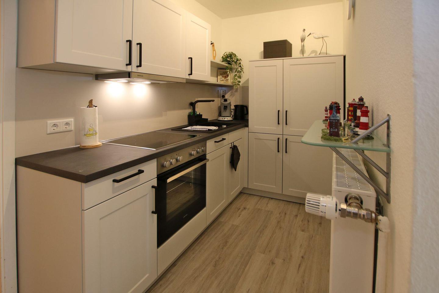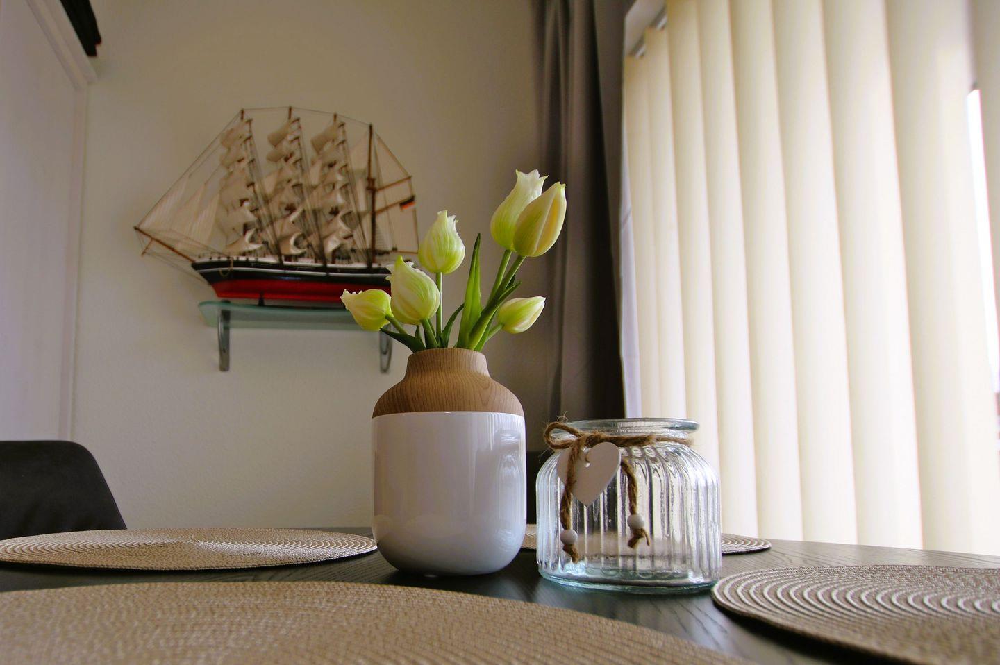 Die Wohnung wurde im Jahr 2024 komplett renoviert. Fertigstellung März 2024. Ferienwohnung in Wyk auf Föhr, Große Straße 19, Whg. 1, ca. 43 qm. Nichtraucherwohnung in der 1. Etage in der Fußgängerzone von Wyk. 2-Zimmerwohnung mit großem (ca. 17 qm), zum Teil überdachtem