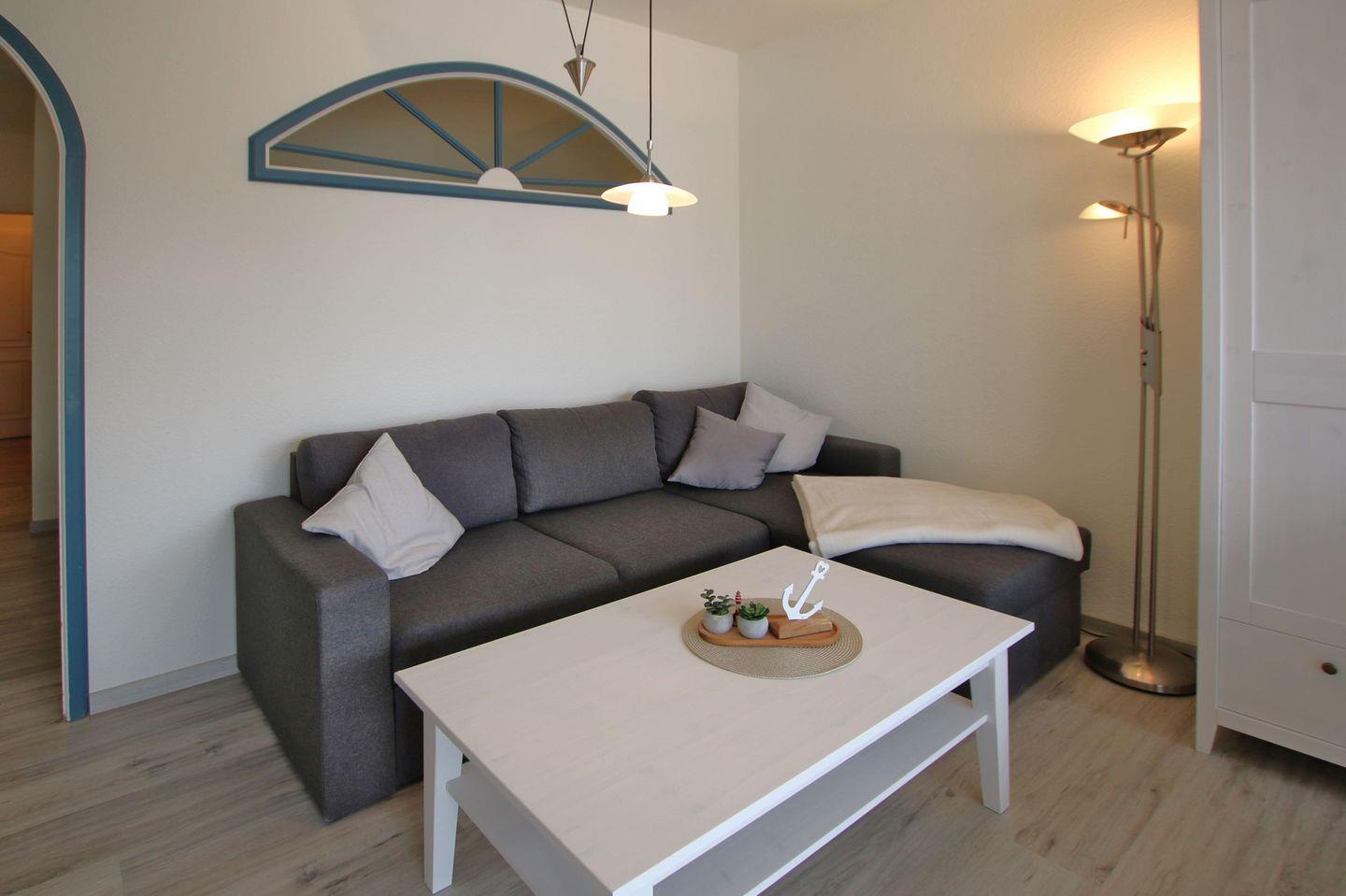 - Wohnzimmer mit Schlafcouch, kl. Tisch und Esstisch mit 4 Stühlen