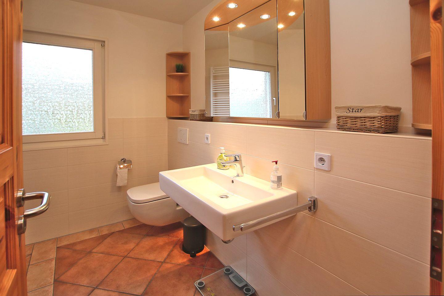 Im EG befindet sich das ca.30qm große Wohnzimmer mit SAT TV, DVD, Radio/CD und direktem Zugang zur Süd-West Terrasse, Terrassenmöbeln und schönem, großem Garten. Große Küche mit allem Komfort und großem Essplatz. Schlafzimmer 1 im EG mit großem Doppelbett (1,80x 2,00m) und Kleiderschrank. Bad 1 im EG mit Dusche und WC. Im 1.OG befinden sich drei weitere Schlafzimmer (1 mit Doppelbett 1,60x2,00m,1 mit Doppelbett 1,80x2,00m + TV) und ein großes Kinderzimmer mit zwei Einzelbetten a 0,90x2,00m, separater Spielecke und ein extra Waschbecken. Bad 2 im 1.OG mit Dusche und WC. Im Keller befindet sich die Sauna und ein Fitnessraum.