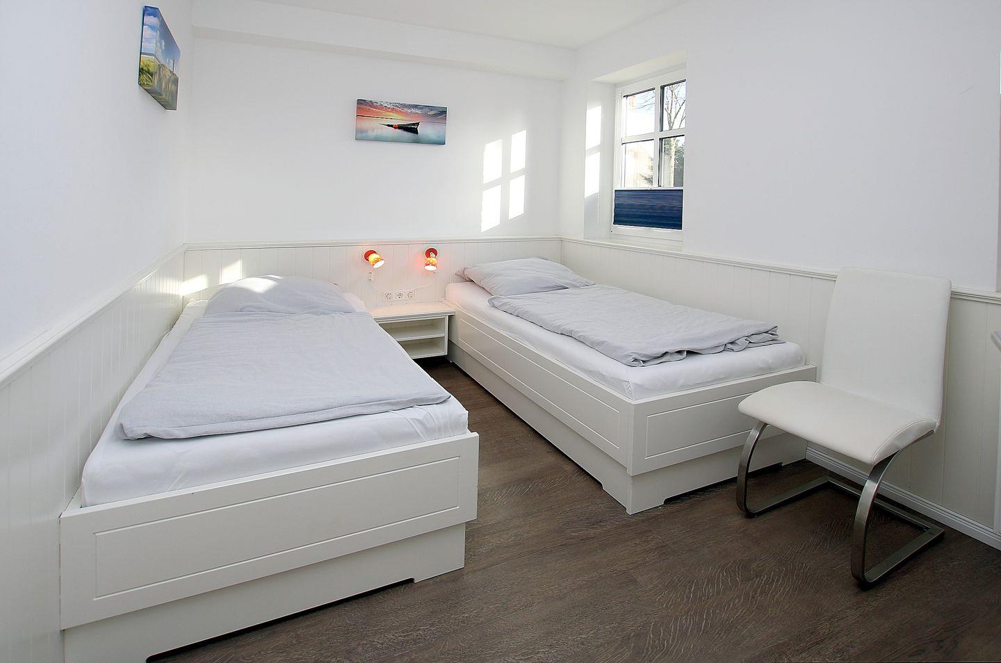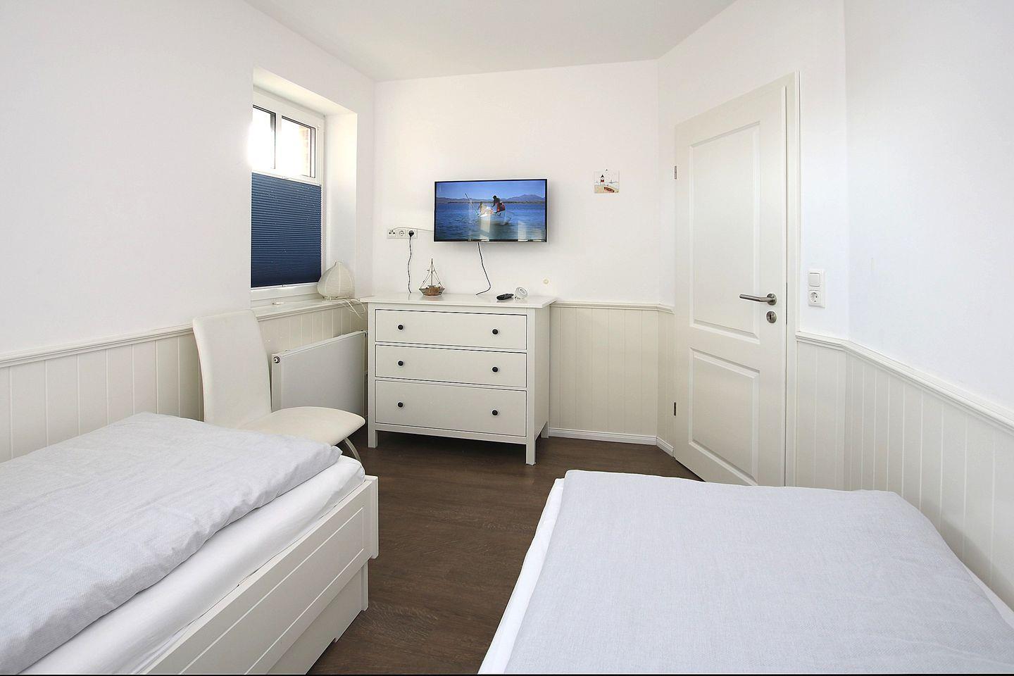 - Schlafzimmer 1 mit zwei getrennt stehenden Betten (0,90x2,00m) und TV