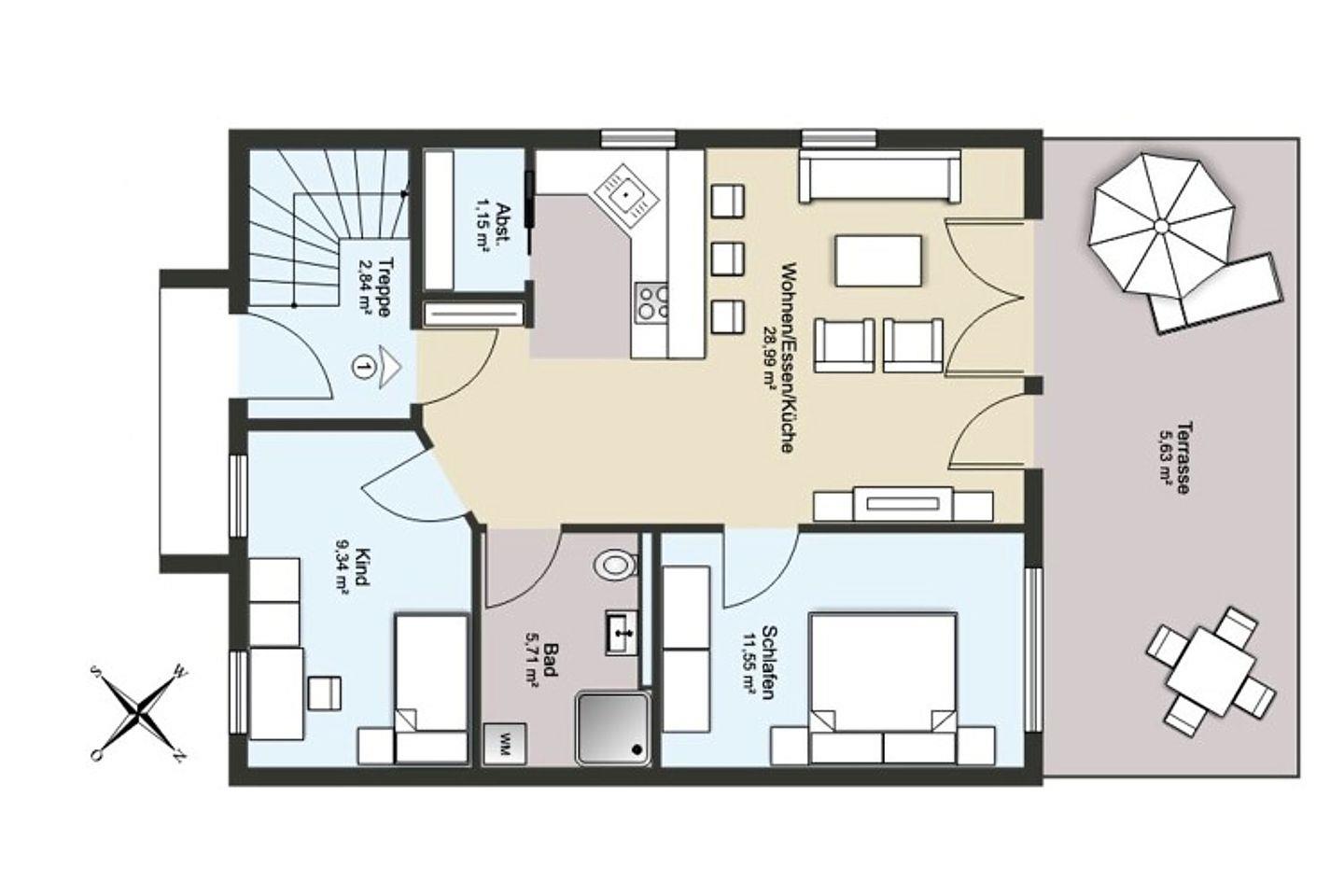 Ferienwohnung mit 3- Zimmern auf ca. 70m² mit Südterrasse im Haus Paula