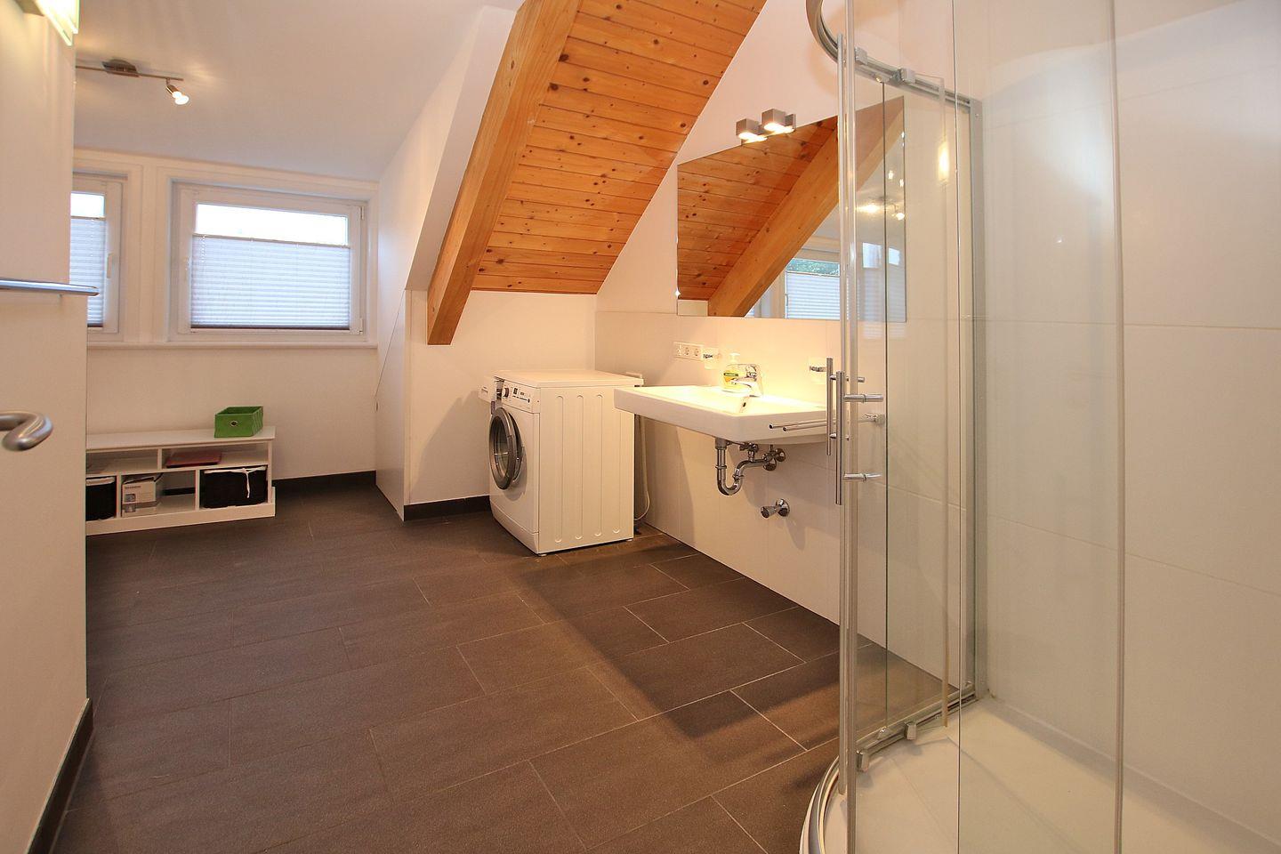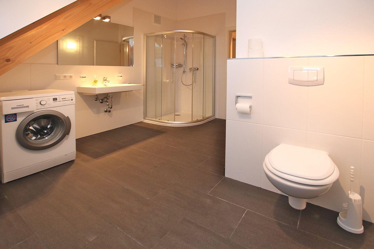 Das BADEZIMMER ist mit Dusche und WC ausgestattet. Eine Waschmaschine finden Sie hier ebenfalls.