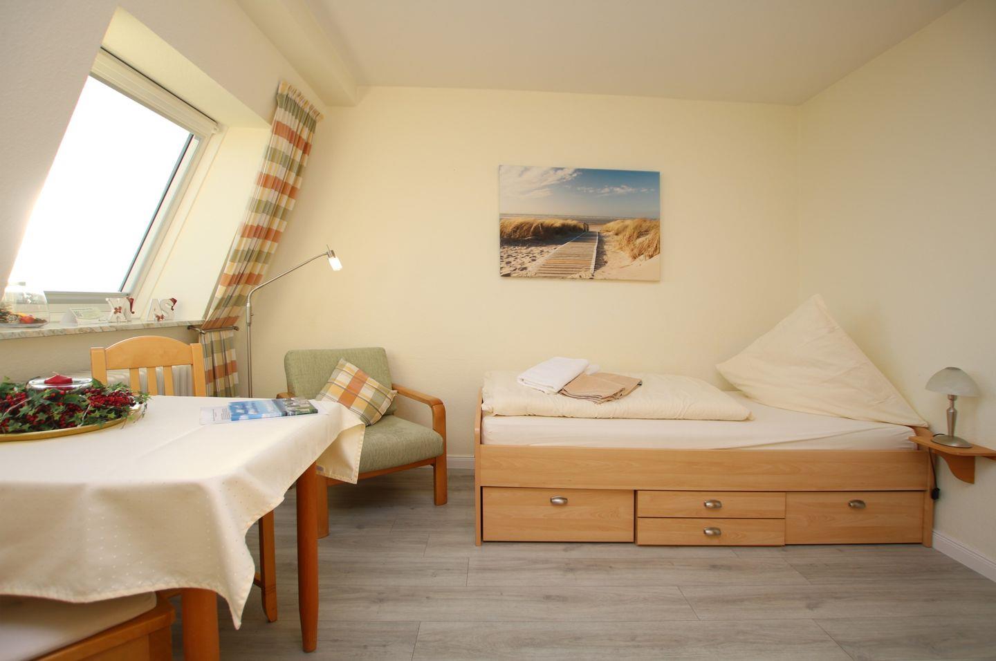 Ferienwohnung in Wyk auf Föhr, Sandwall 11a, Wohnung 5 (ca.33 qm) mit Meerblick. 2-Zimmer-Nichtraucherwohnung im Dachgeschoss und Meerblick für 1 bis 3 Personen