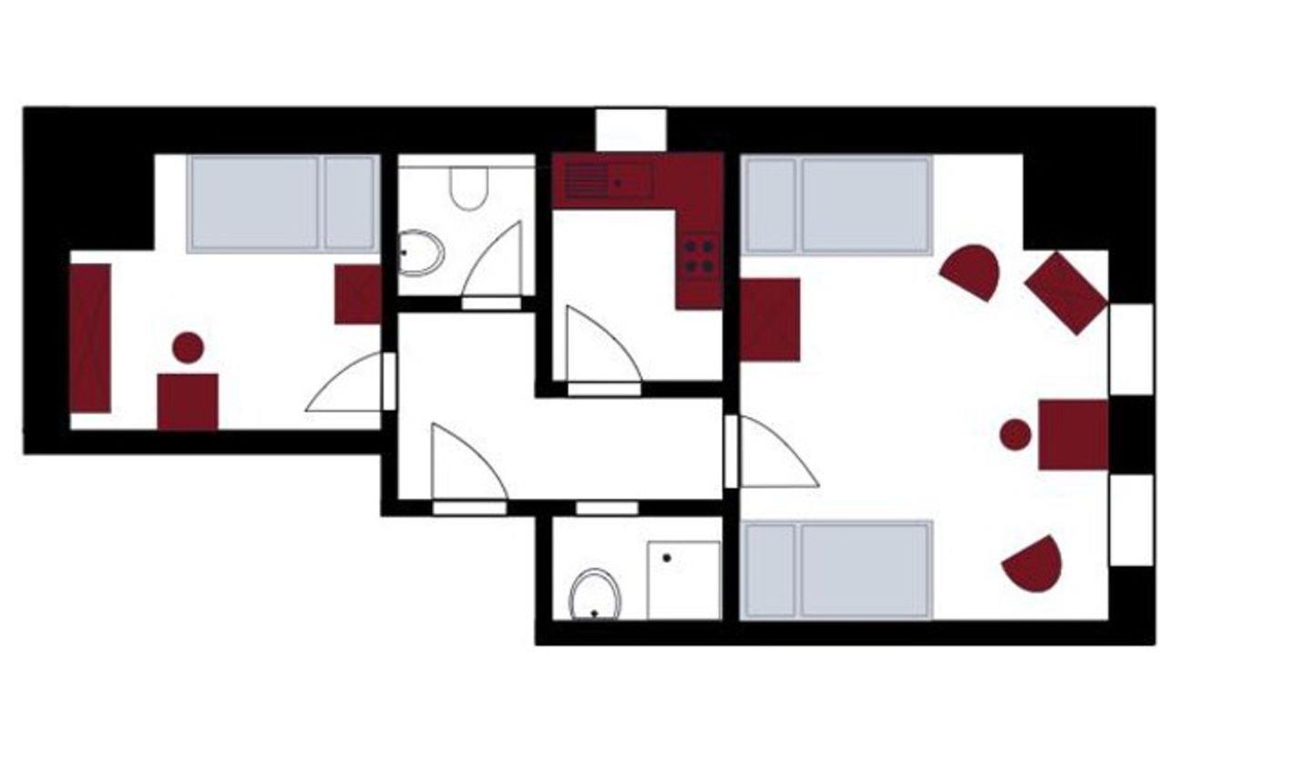 - Wohn-/ Schlafraum mit 2 Einzelbetten, 2 Sesseln, Essplatz, TV