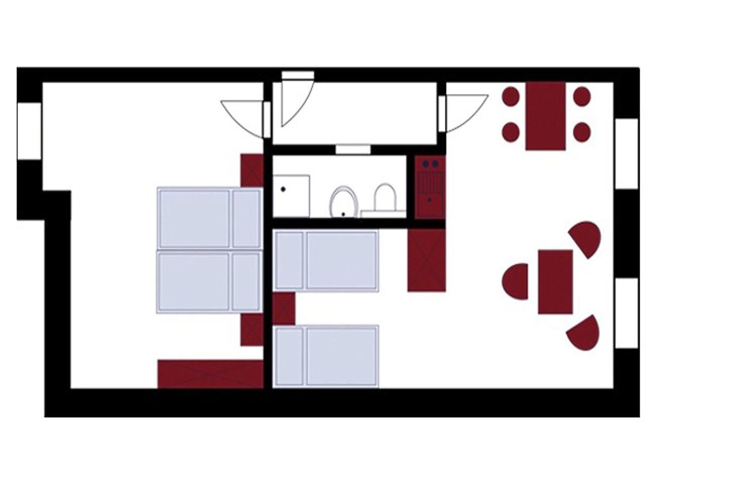 - Wohn-/ Schlafraum mit 2 Einzelbetten, Sitzecke, Essplatz, Pantryküche, TV