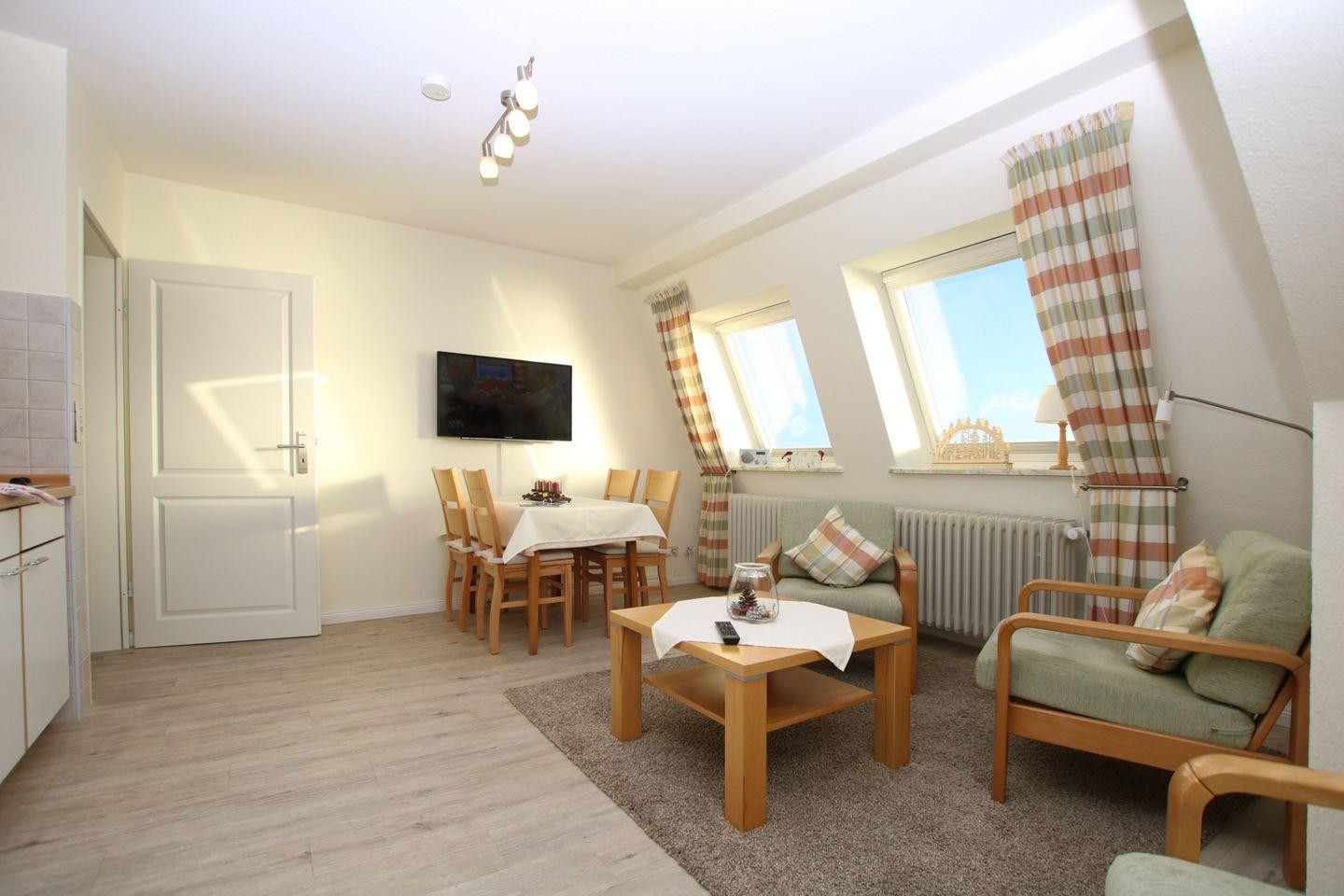 Ferienwohnung in Wyk auf Föhr, Sandwall 11a, Wohnung 6 (ca.45 qm) mit Meerblick. 2-Zimmer-Nichtraucherwohnung im Dachgeschoss und Meerblick für 1 bis 4 Personen