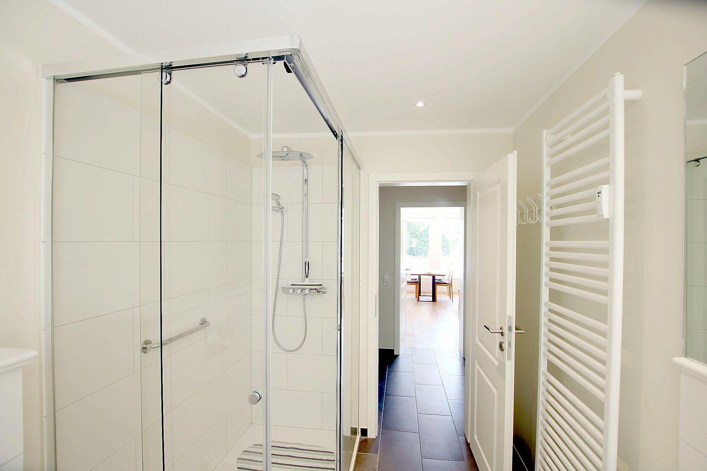 - Badezimmer mit extralanger Dusche (1,60m) und Regenbrause