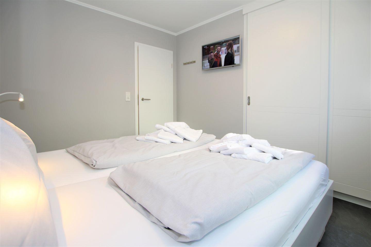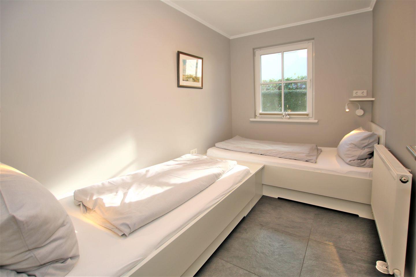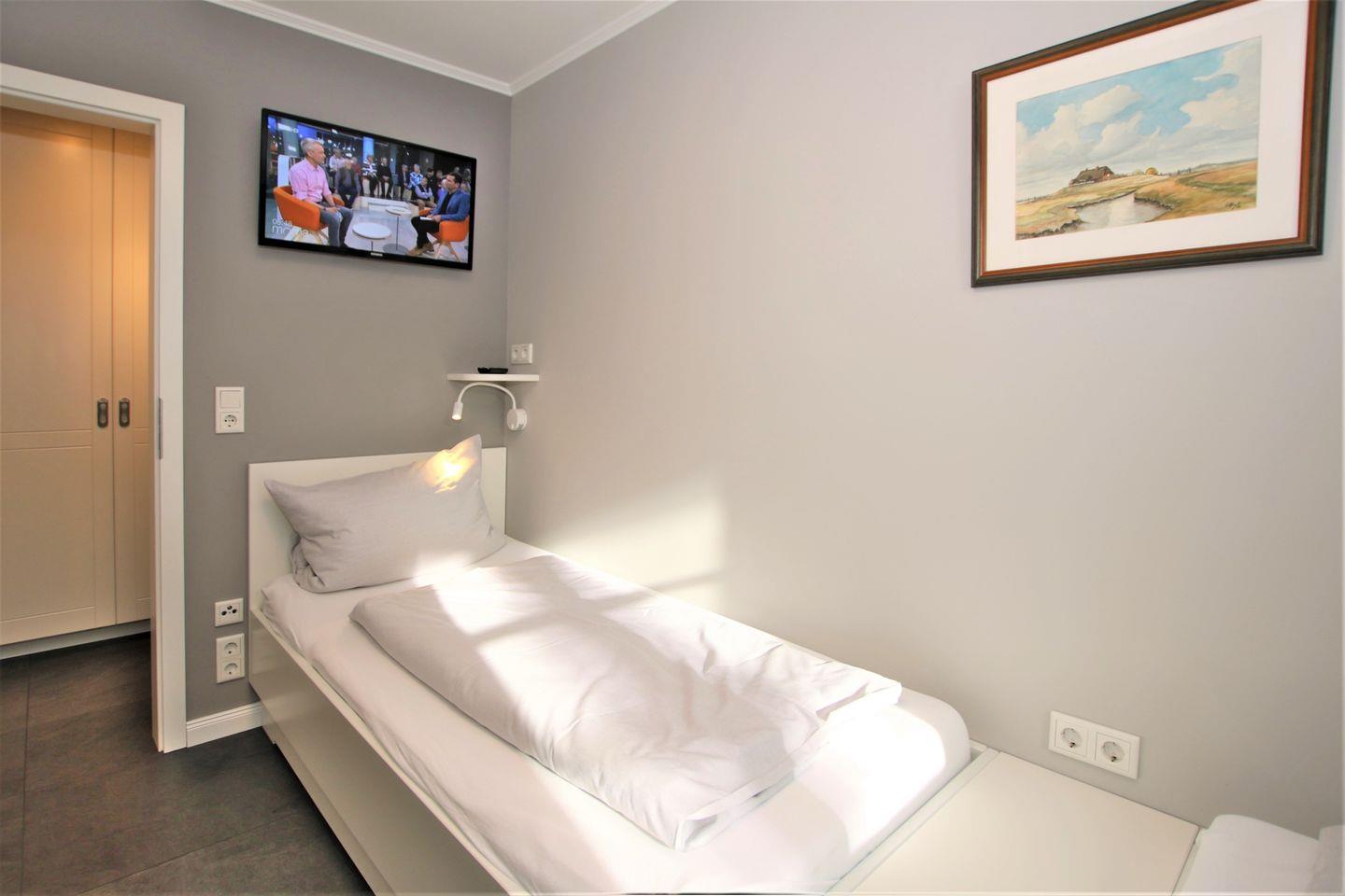 - Schlafzimmer 2 mit 2 Einzelbetten, TV- Gerät und Kleiderschrank