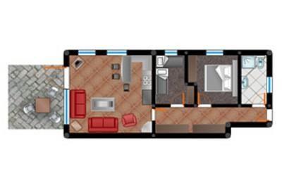 - Schlafzimmer 1 mit Doppelbett (1,80x2m), TV- Gerät und Kleiderschrank