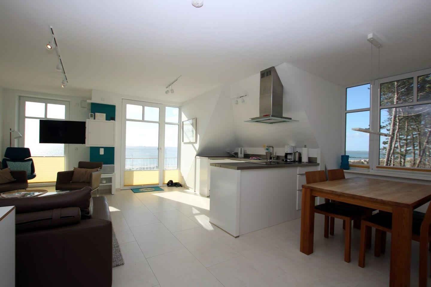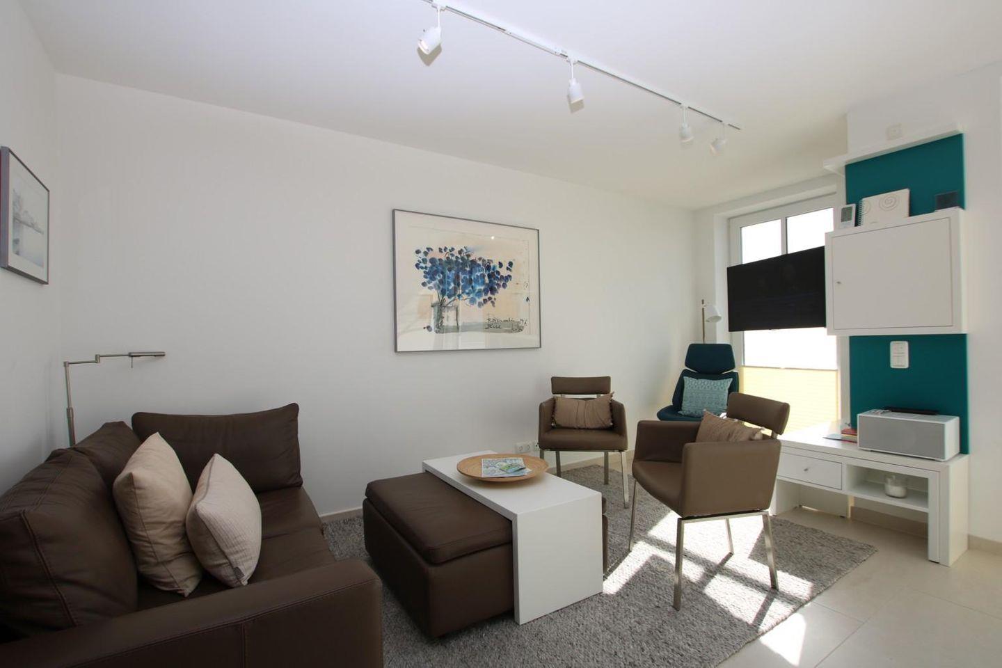 Diese traumhafte 3- Zimmer Ferienwohnung (1. Obergeschoss) in bester Lage am Wyker Südstrand lässt keine Wünsche offen. In erster Reihe zu Strand und Meer erstrecken sich die ca. 80m² der Nichtraucherwohnung. Vom Balkon haben Sie einen sagenhaften Blick auf die Nachbarinseln und das Meer. Das großzügige Wohnzimmer mit offener, luxuriöser Küche, einem Esstisch mit vier Stühlen und der bequemen Ledercouch mit zwei Sesseln lädt nicht nur bei schlechtem Wetter zum verweilen ein.