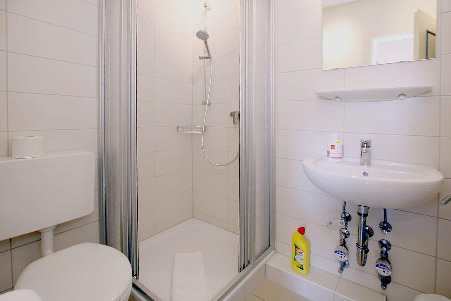 BAD mit Dusche und WC. TERRASSE mit Strandkorb. Im KELLER stehen Ihnen SCHWIMMBAD und SAUNA zur Verfügung. Fahrradständer am Haus. LAGE: Marschnähe und dörflich. Bushaltestelle in der Nähe. Zum Zentrum von Wyk, Strand, Kurmittelhaus und Wellenbad sind es ca. 20 - 30 Minuten Fußweg. Münzwaschmaschine und -trockner befinden sich im Keller. Alle Räume sind mit Fliesen ausgelegt und hell und freundlich eingerichtet. W-Lan in der Wohnung.